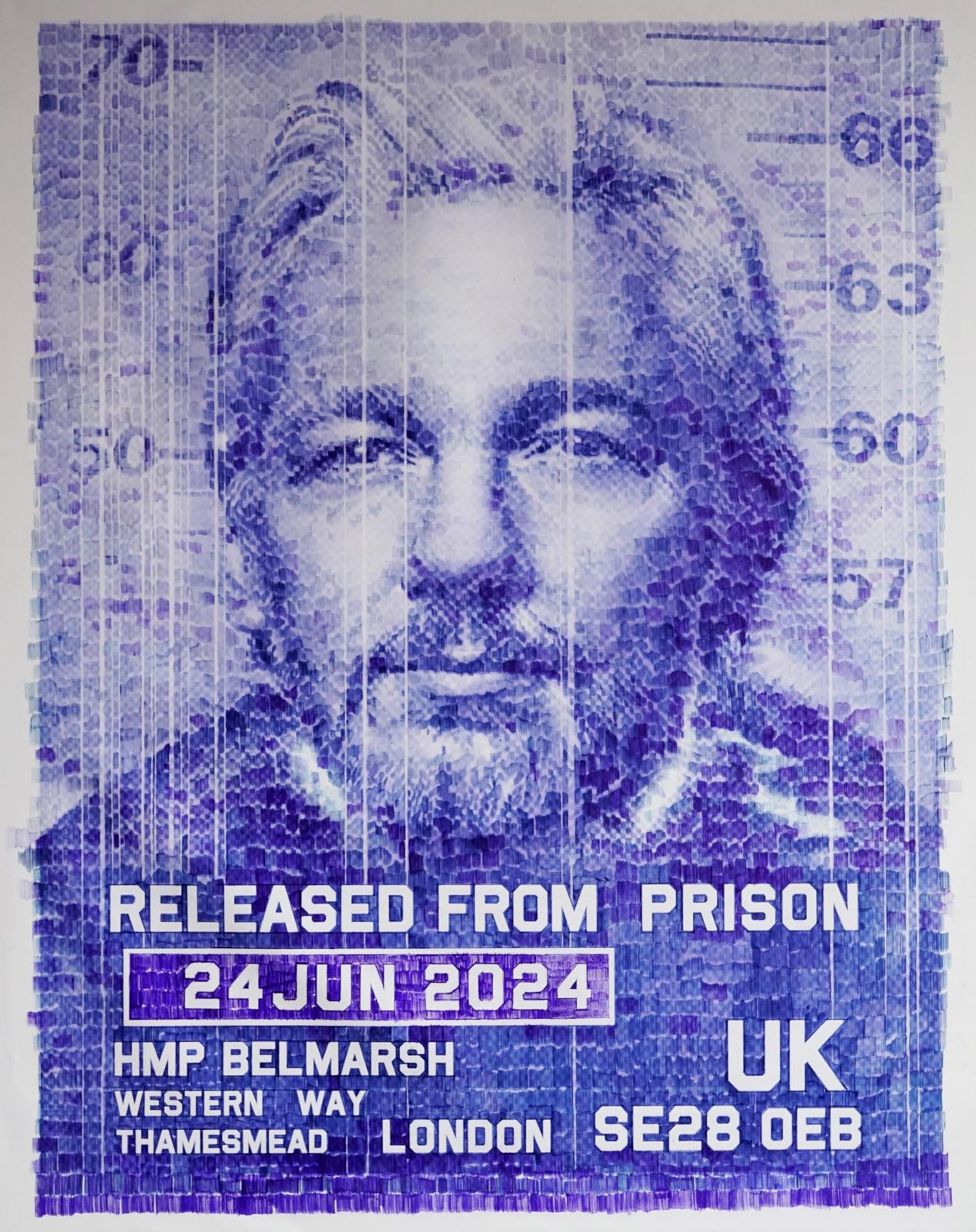 Meticulously drawn with a humble ballpoint pen, the 2.2m x 1.7m work is what the conceptual artist describes as “an artistic gesture” to draw attention to the WikiLeaks founder’s detention. Its title, Date of Freedom (2024), refers to Assange’s release from Belmarsh Prison in London on 24 June, where he was held awaiting extradition to the US to face charges including espionage. Assange spent four years in custody, and another seven in self-imposed exile at the Ecuadorian Embassy in London, before his release this summer.