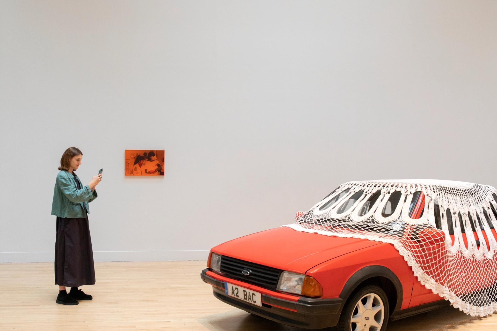 Installed at London’s Tate Britain, where the prize has returned after outings to museums in cities including Liverpool and Hull, Kaur’s striking installation of a red Ford Escort draped with an enormous cotton doily, blasting out a mash-up of pop, hip-hop and qawwali devotional music from its sound system, helped clinch the award.
