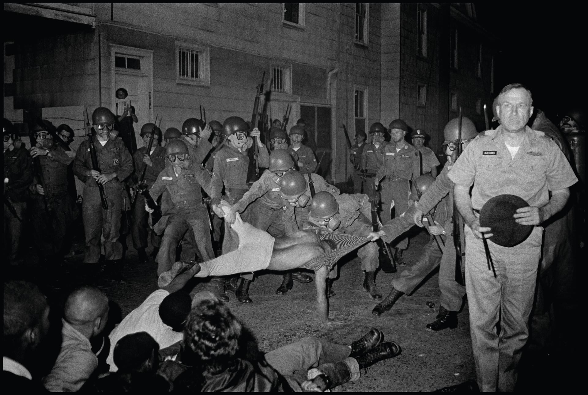 “It’s not necessarily an especially well-known picture of Danny Lyon’s or an especially well-known picture of the civil rights movement. The person that showed it to me was the artist Hank Willis Thomas. I was like: ‘holy shit, how did I miss this extraordinary photograph?’ I was captivated by its power: the scene of this guy getting ripped in four, all the soldiers wearing gas masks, these disembodied forms. This is a part of Maryland which is still pretty economically and racially segregated in a lot of ways.”