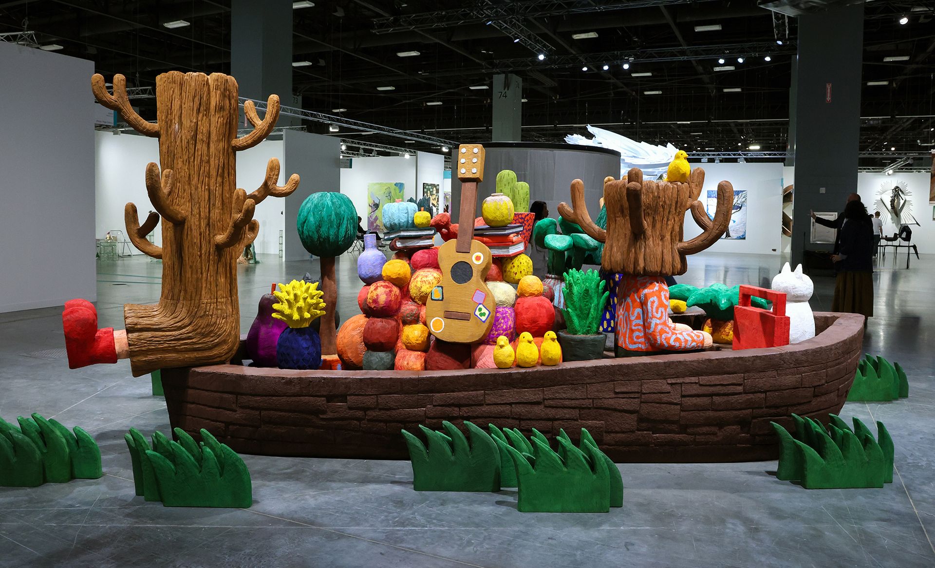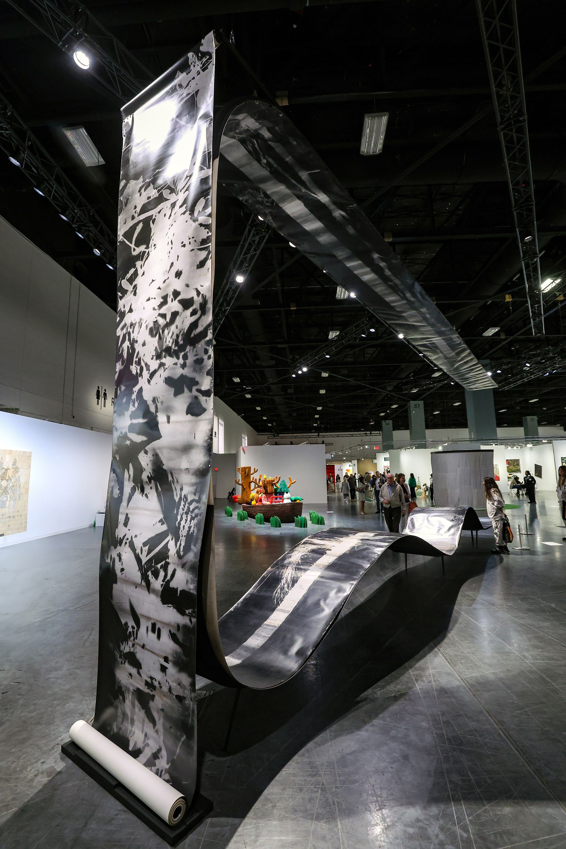 Art Basel Miami Beach’s Meridians sector marks its fifth year with a new curator, Yasmil Raymond, formerly of New York’s Museum of Modern Art and the Walker Art Center in Minneapolis, and currently rector of the Städelschule art school in Frankfurt. “This is my first time curating for an art fair,” Raymond says proudly, noting that she sees the Meridians section as a place for artists at the peak of their careers. “I wanted the least amount of walls,” she says of her curatorial vision, likening the open section of large-scale works to an agora filled with pieces relating to “becoming, movements, transformation and metamorphosis”. Here, Raymond offers a tour of some of this year’s highlights.