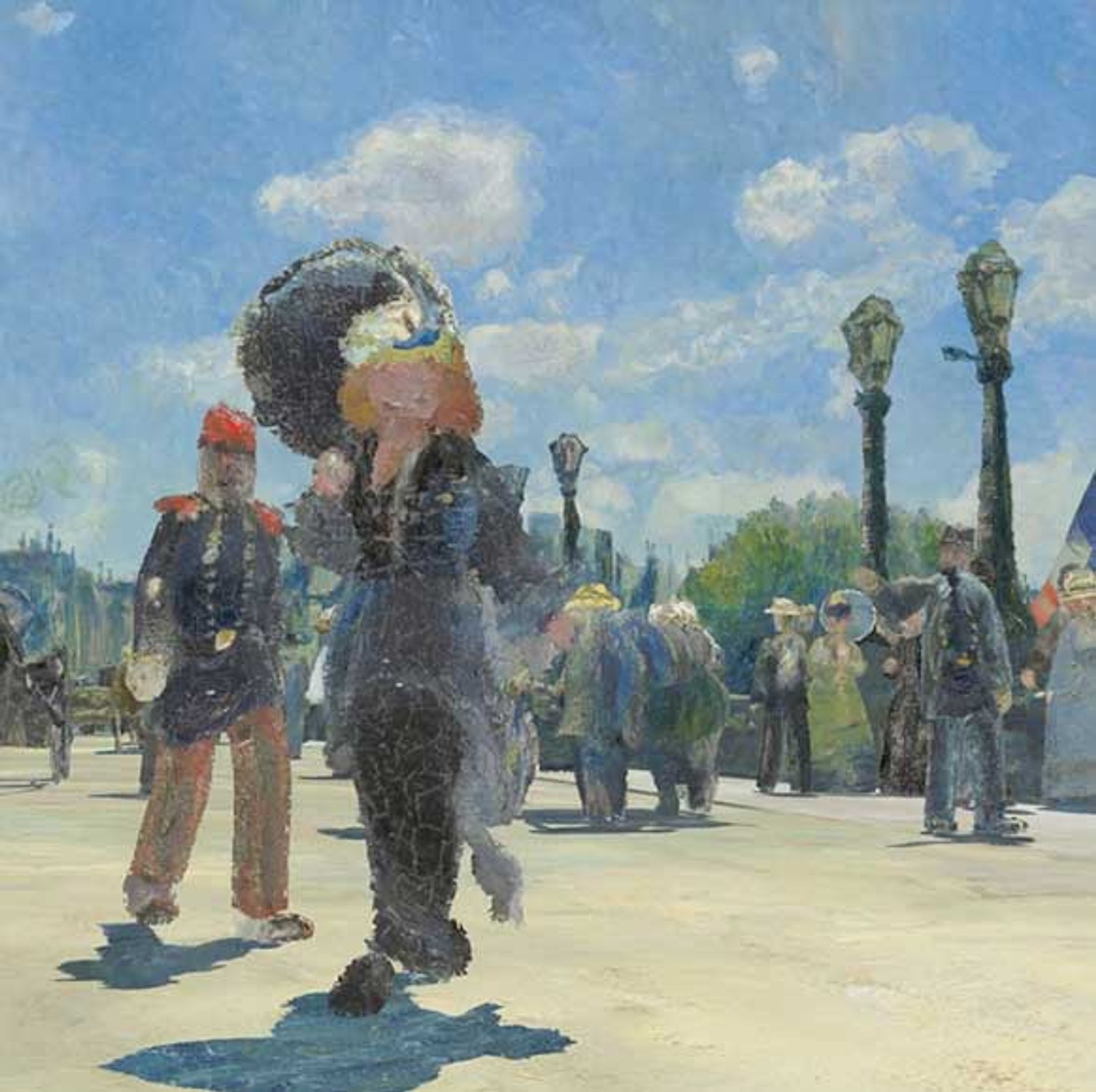 The NGA has published two of Zakirzyanov’s videos on its social media accounts to promote the exhibition Paris 1874: The Impressionist Moment (until 19 January 2025), which looks at the origins of the art movement and includes works by Paul Cézanne, Claude Monet and Berthe Morisot among others. The first video, posted in September, animated Pierre-Auguste Renoir’s painting Pont Neuf, Paris (1872). The busy scene captures people, carriages and carts crossing the oldest bridge in the French capital in the midday sun. Zakirzyanov’s video adaptation pans across the Pont Neuf and zooms in on some of Renoir’s characters as they pass by, including one glamorous-looking lady dressed in black and carrying a parasol. The faces are blank, as Renoir painted them, and the texture of the original paint remains. The second video, posted in October, is of Édouard Manet’s The Railway (1873), and it tenderly focuses in on the face of the woman and the small puppy that she is holding.