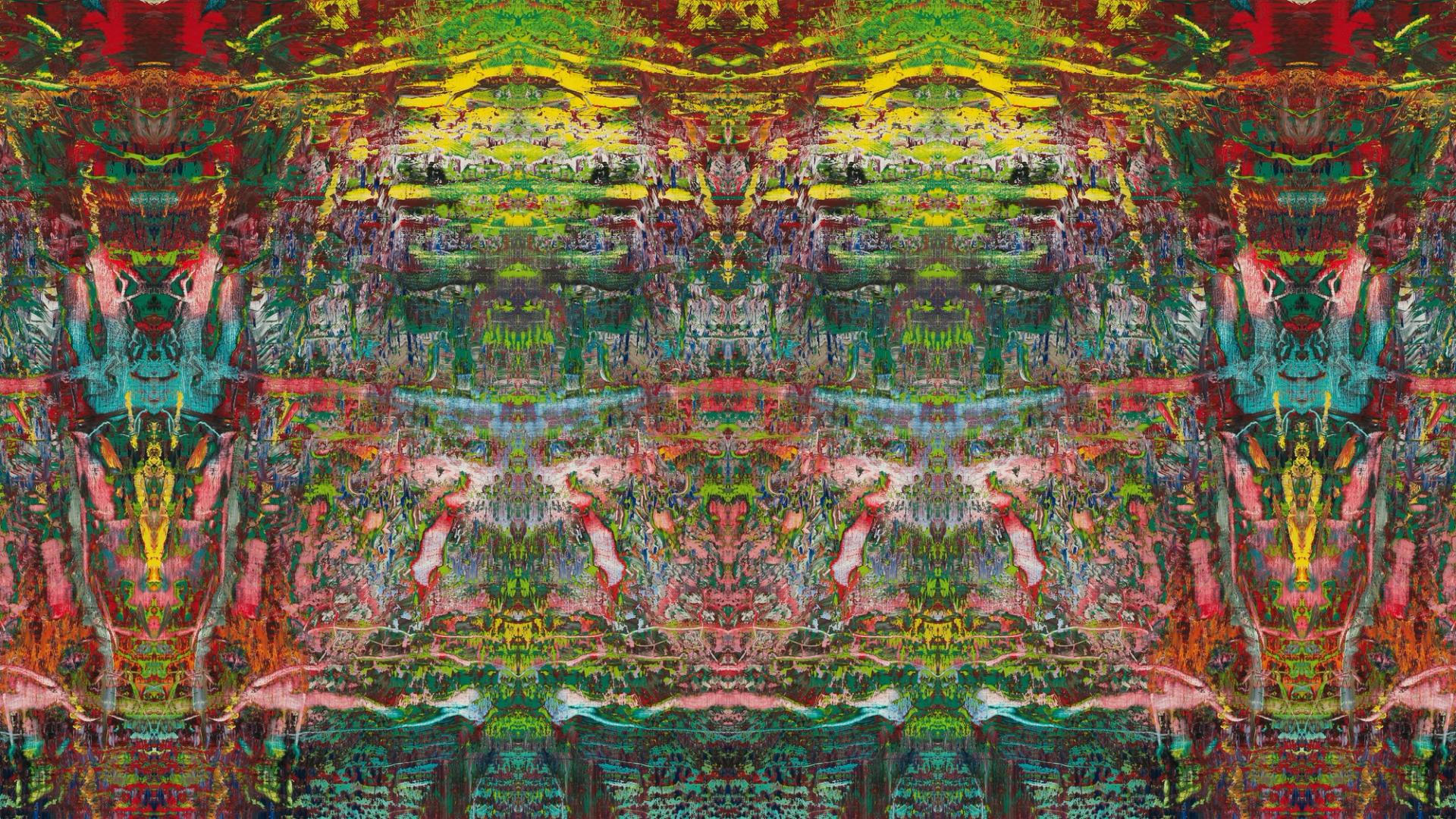 Starting with a digital photograph of the painting, Belz—Richter’s filmmaker collaborator and the only person ever allowed to film him at work—devised a kind of algorithm for progressively breaking it down ever further, to nearly pixel level. This involved halving then mirroring, like a Rorschach test, each photograph and repeating that process. An ever finer symmetrical patterning ensues. The fragments get narrower and more multitudinous as Belz's camera seeks out the galaxies contained within.