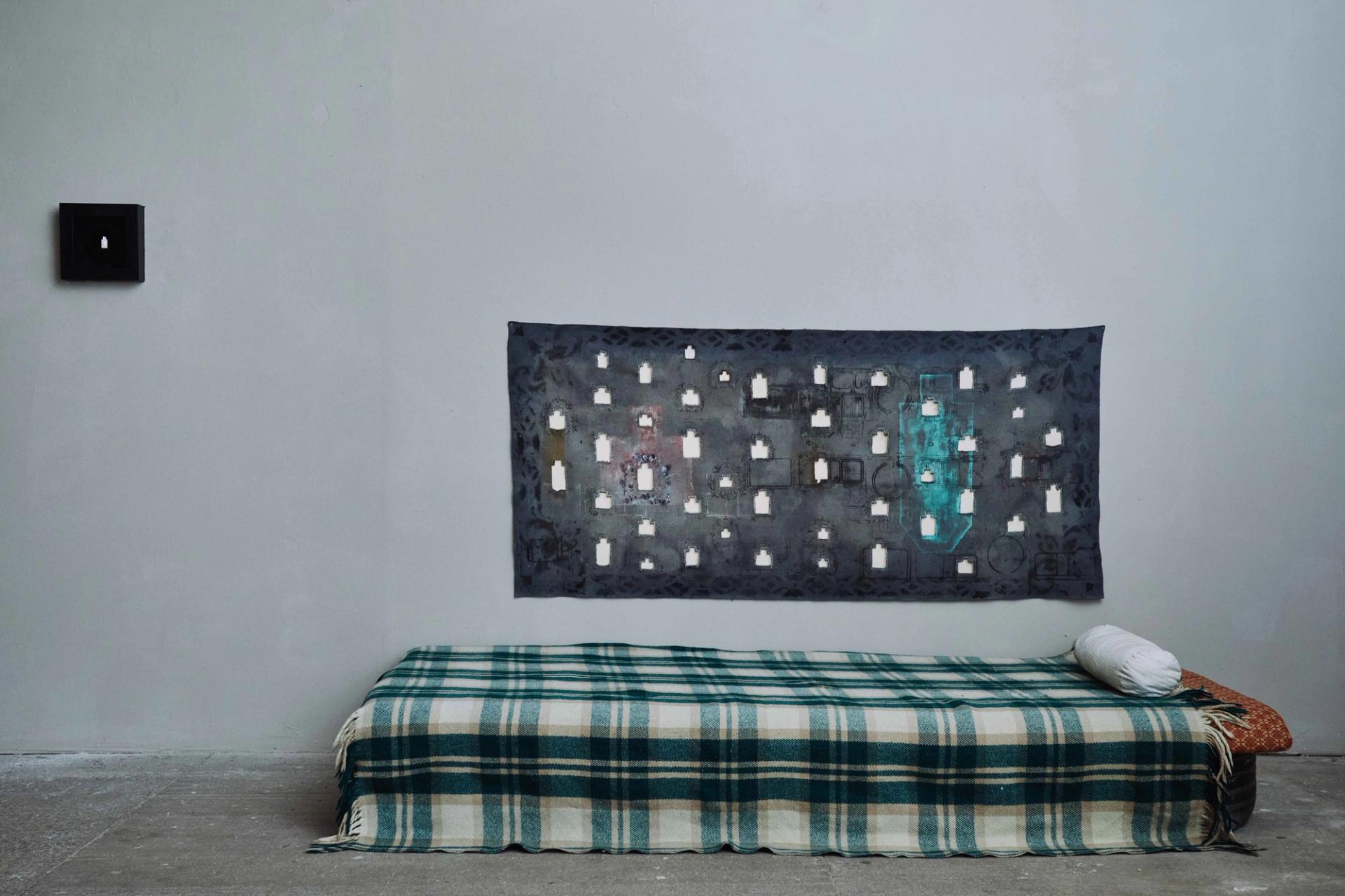 Installation view of Pavlo Makov, Bed, Carpet, Brooch (2024)