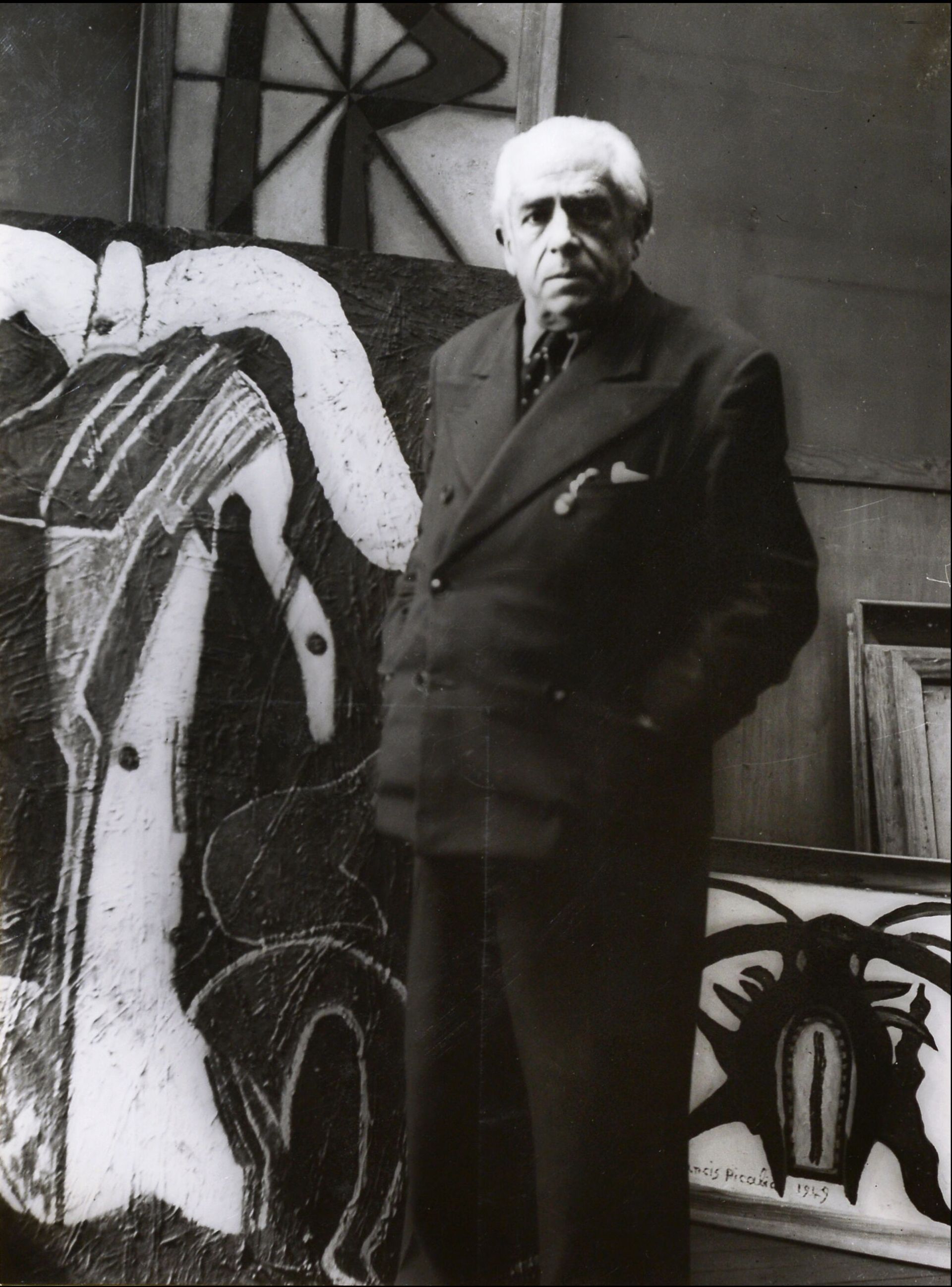 Picabia in his studio at 26 rue Danielle-Casanova (formerly rue des Petits-Champs), Paris (around 1948–49) Image: Archives Comité Picabia, Paris