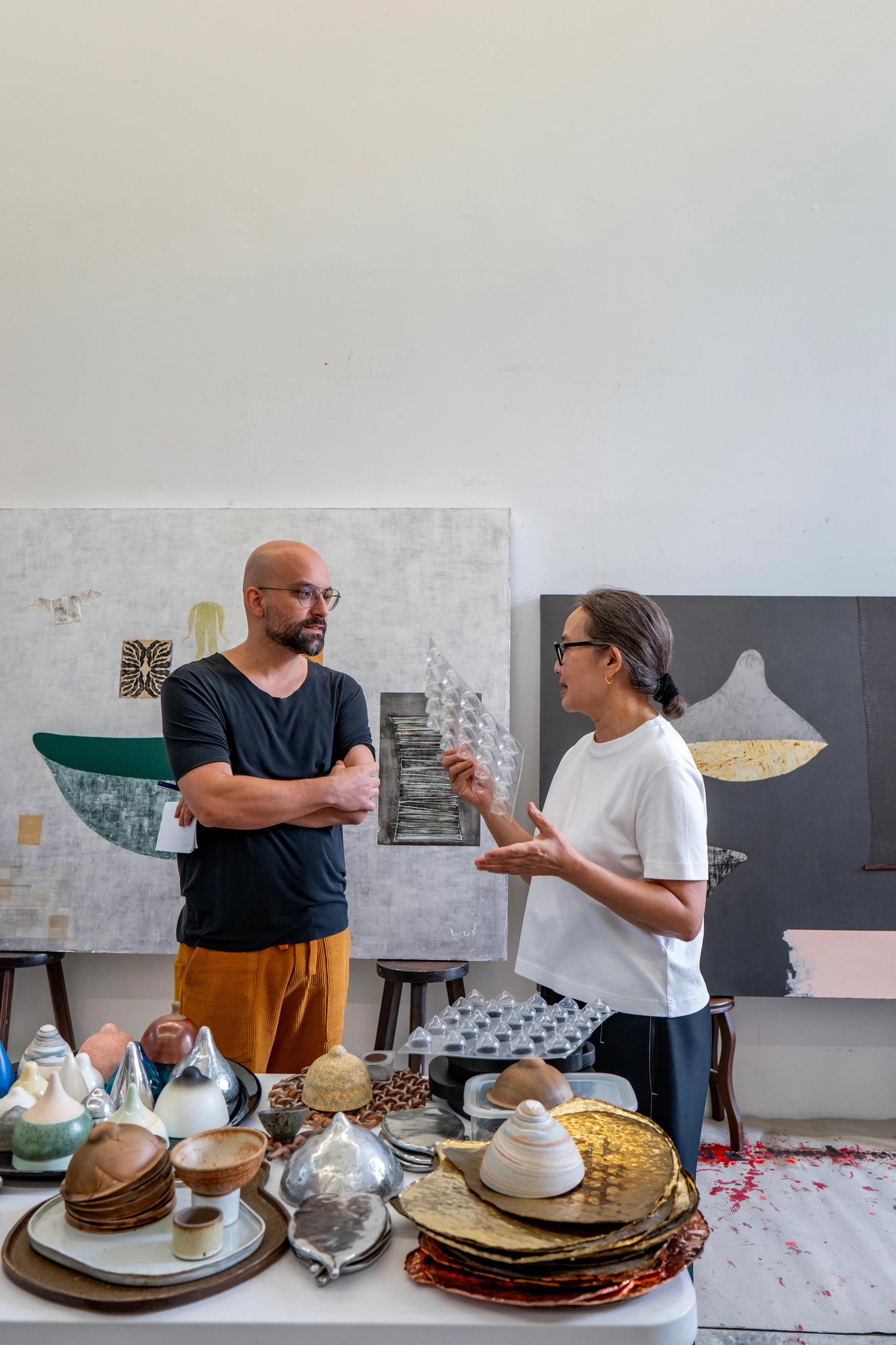 Of Milk and Water is a collaboration between the artist Pinaree Sanpitak and the chef Ivan Brehm. Sanpitak explores and celebrates the female form, and is best known for her “breast stupa” motif, merging the breast and the Buddhist stupa—a site of spiritual veneration. Since 2005, she has extended this form into the realm of food and edible art through her ongoing Breast Stupa Cookery project, collaborating with chefs to craft unique experiences that bring people together across diverse contexts.