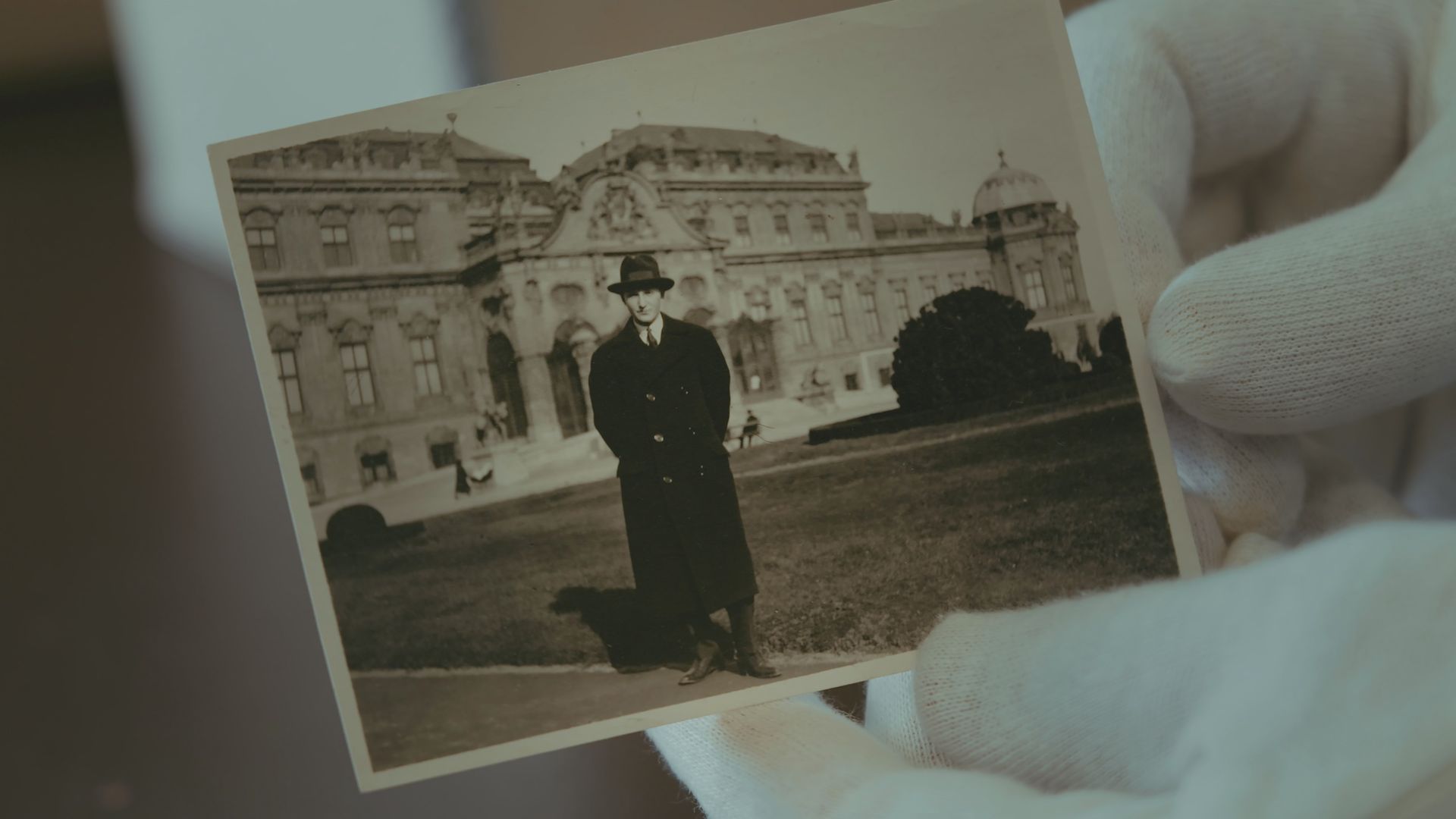 Archival photograph of Max Stern held by Philip Dombowsky in The Spoils Courtesy Cave 7 Productions