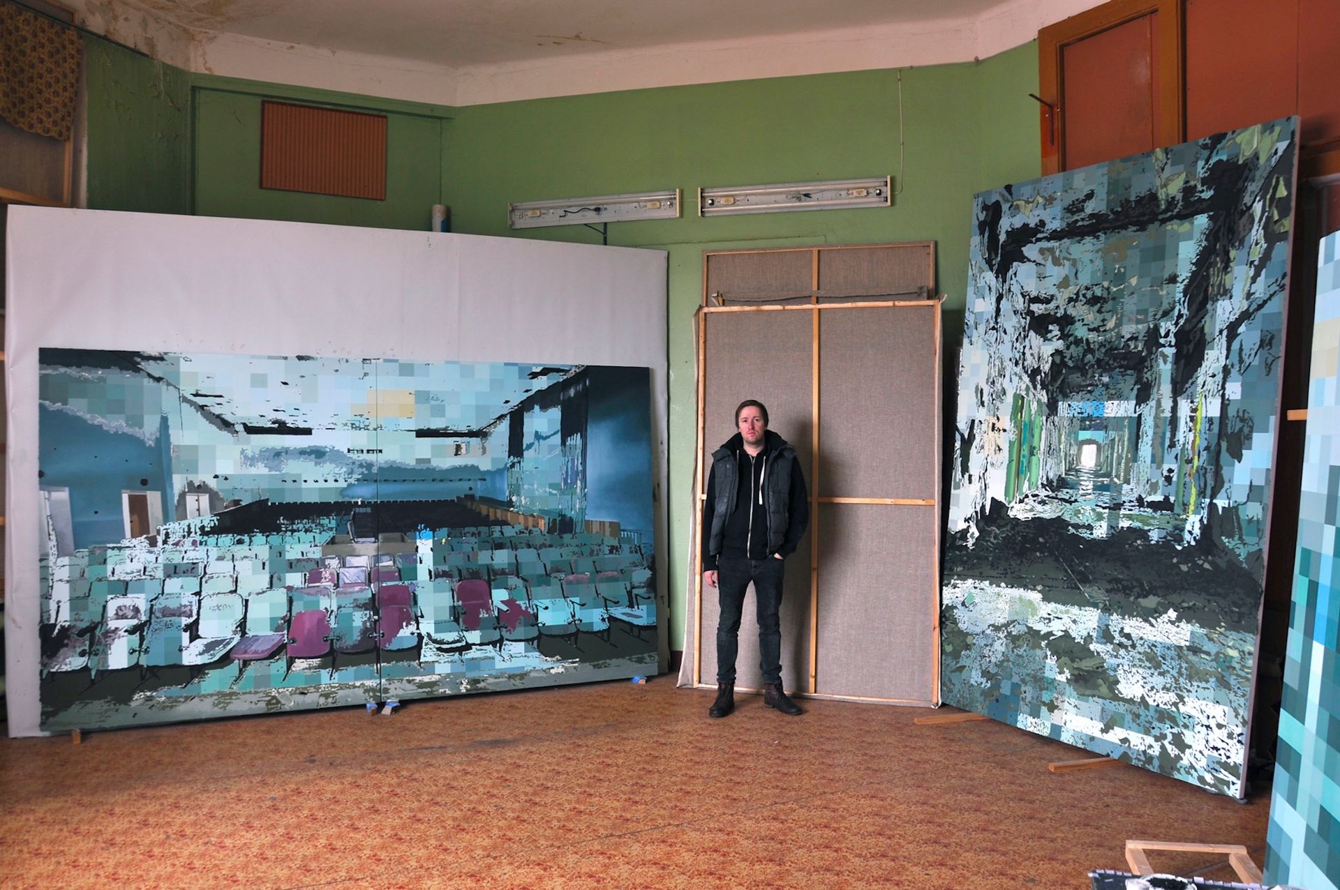 Dmitry Okruzhnov in the duo's former studio in Russia Courtesy the artists