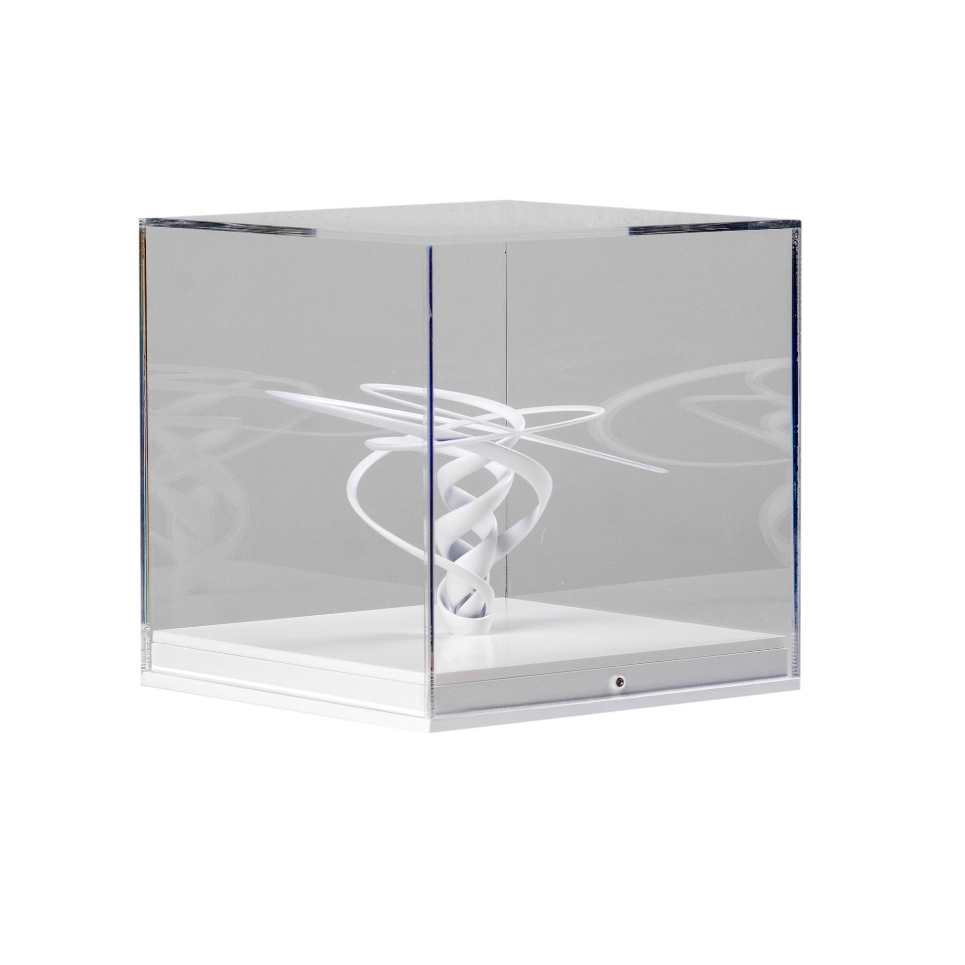 Participating artists were, as usual, invited to create a unique sculptural work inside a Perspex box measuring 20cm3 or in a new two-dimensional format of 20cm x 20cm. For the second time, project organisers are also offering a range of newly commissioned NFTs, with contributing artists including Licia He and Florian Zumbrunn.