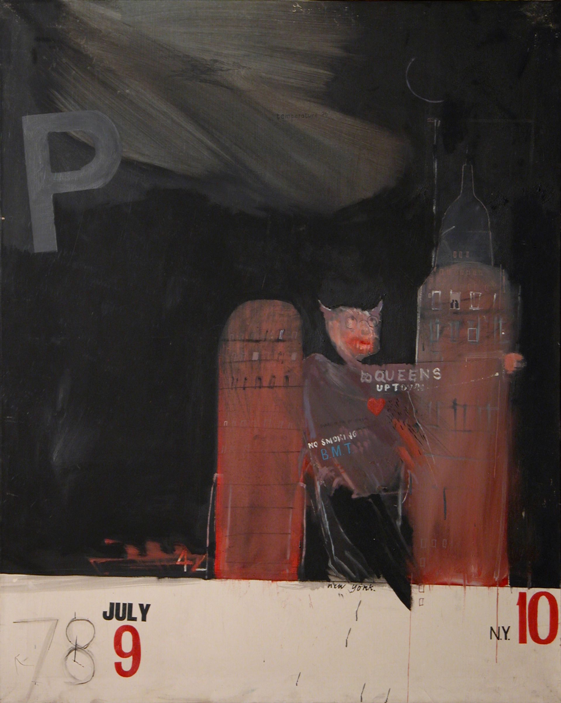 In this work the artist’s brush strokes are physical, accompanied by the frank words “thrust” and “Queen”. This contrasts with The Cha Cha that was Danced in the Early Hours of 24th March 1961, painted just a year later, where the artist’s approach is much softer. The figure in the later painting, who Kasmin describes as a man for whom Hockney had romantic feelings at the time, is accompanied by the words “I love every movement”.
