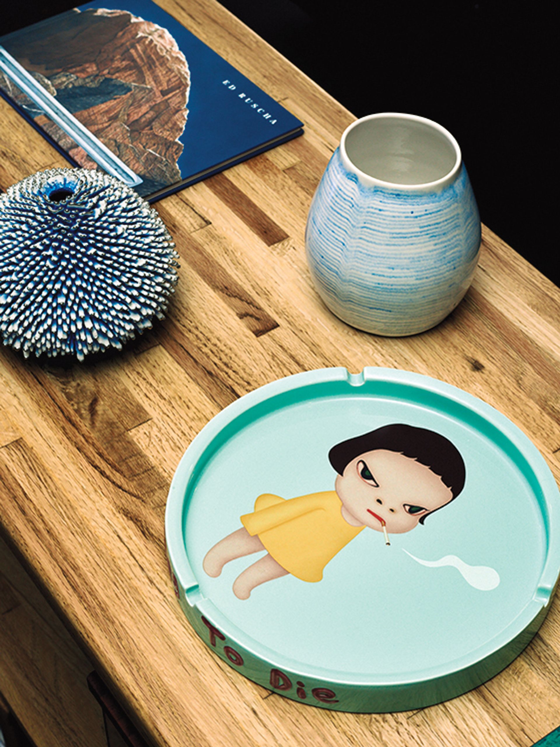 Cohen’s collection includes The Haas Brothers (left) and Shio Kusaka (top right), plus a Yoshitomo Nara ashtray Photo: Molly Matalon