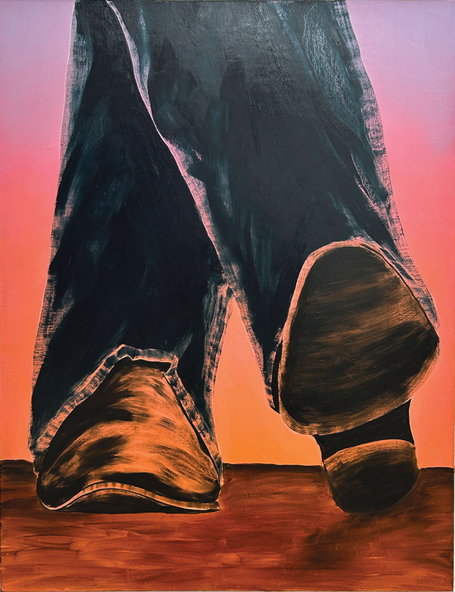 One of the suites of paintings is the dance montage, which is my favourite thing about 80s dance movies; I have this theory that, because of the advent of MTV, there was a visual language that contaminated mainstream movies—a lot of them are good, but they feel like an excuse to make a bunch of fun video clips. So I tried to hone into that montage language of very, very tight close-ups on the crotch and other body parts. Like, “How sexy, look at this person’s butt!”