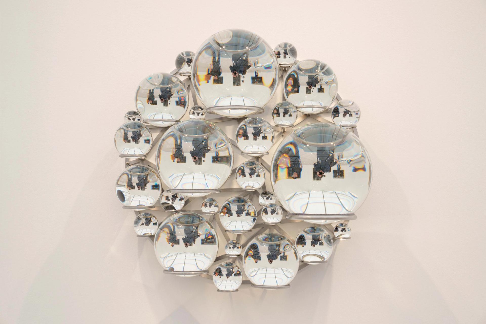 The Danish Icelandic artist has devoted much of his career to recreating sensual and optical phenomena in his work—as can be seen in his solo exhibition at the Museum of Contemporary Art’s Geffen space (until 6 July)—and the latest work in his series of glass orbs offers the irresistible opportunity to see oneself reflected in miniature and upside down. The work’s unique configuration draws inspiration from dew drops, sunflower pistils and algae. A gallery staffer confirms that the work had sold by the morning of the fair’s second day, but did not disclose the price.