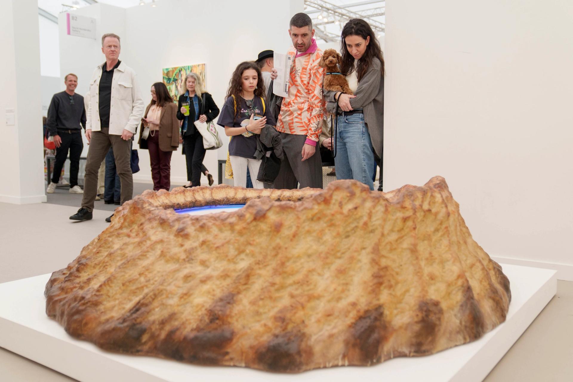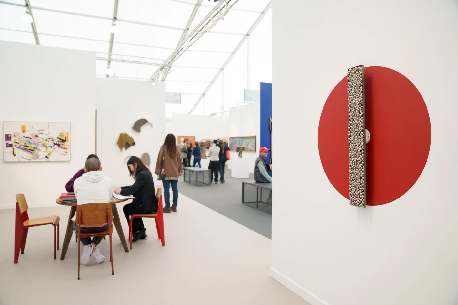 This kinetic sculpture, which Schneider made for the 2024 Gwangju Biennale, is mesmerising visitors to the Galleries Together benefit stand supporting the LA Arts Community Fire Relief Fund. It features a metal marble tracing enigmatic drawings in a circular plot of sand rimmed with colourful lights. The marble is controlled by a magnetised robotic arm concealed within the sculpture. “Once the drawing is complete, the marble moves to the centre and then spirals outward, erasing the image,” says Oliver Evans, a senior director at the gallery. The work is available for $82,000.