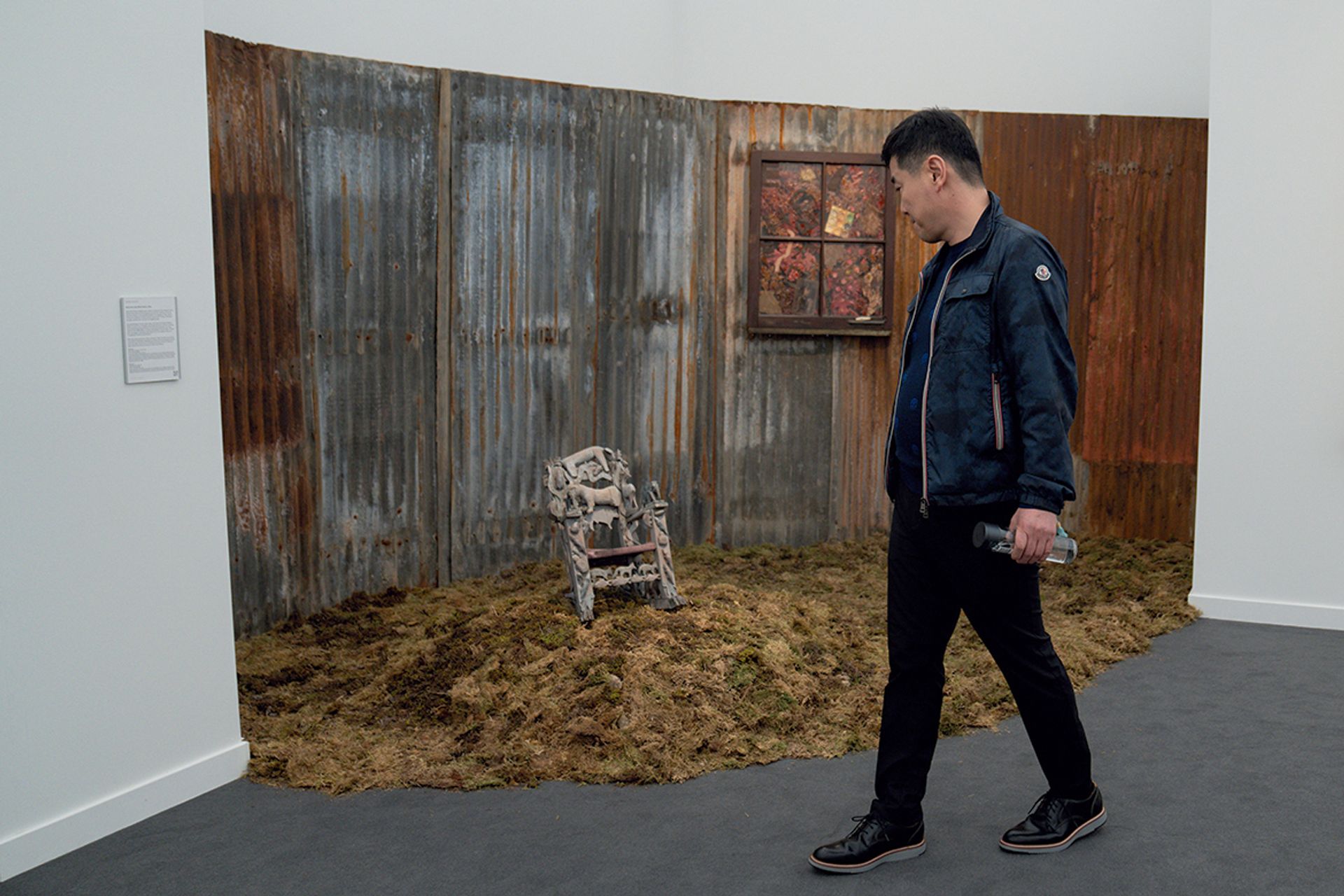 This installation includes two works by local darling Betye Saar, who will celebrate her 100th birthday next year. “Five years ago, we started digitising all of Betye’s archives,” says the gallerist Julie Roberts. “We found the Critter Chair in storage and Sanctified Visions photos in her archive.” The chair rocks back and forth, and the grass goes deep into the corner of the gallery’s stand. The installation honours the writer Zora Neale Hurston; the chair and window are being sold separately, for $200,000 and $300,000, respectively; Roberts says that there has been institutional interest in both.