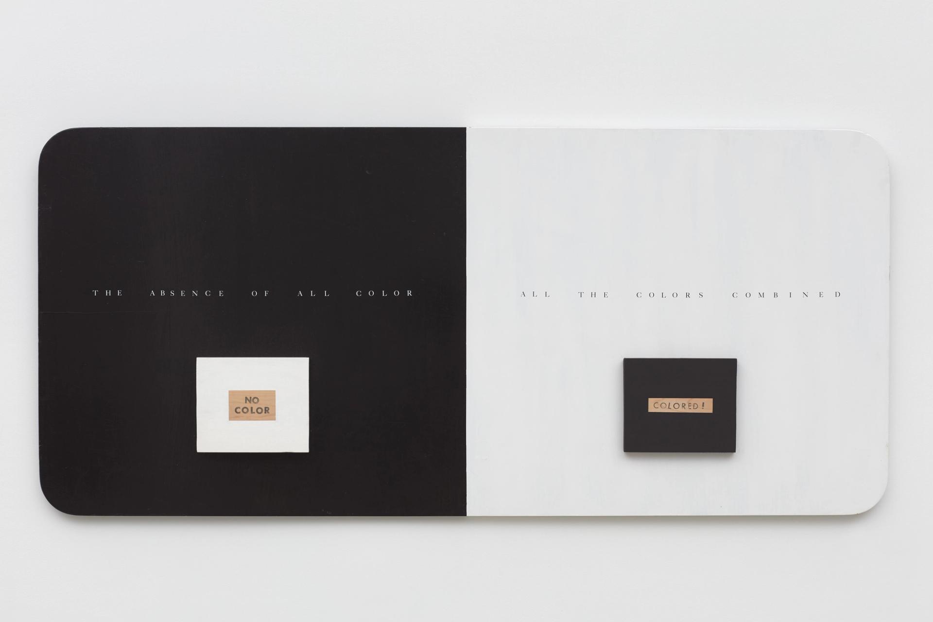 Renée Green, Color / No Color, 1990, Wood, latex enamel paint, Letraset dry transfer, rubber stamped ink type, 30 × 66 in (76 × 168 cm)
