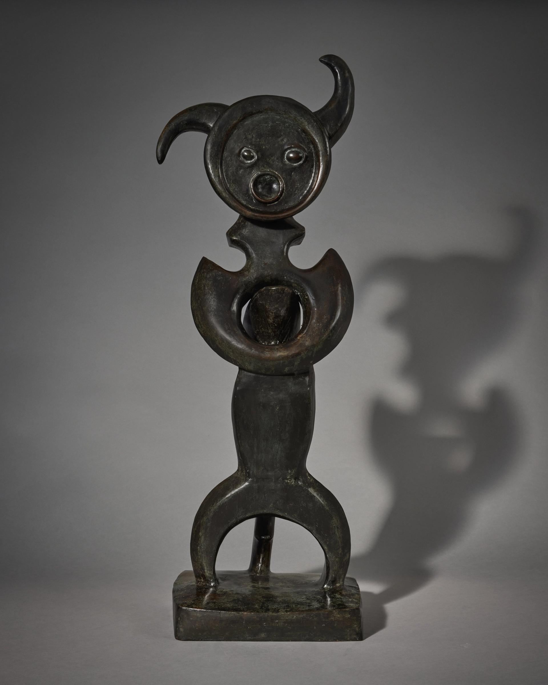 Among the other works to attract sustained competition were the 1956 Max Ernst bronze sculpture, Moonmad, which, thanks to its market-freshness and distinguished provenance, was pursued by six bidders to £2.1m (with fees) against a low estimate of £600,000, and Alberto Burri‘s impressively large, prime-period Sacco e Nero 3 mixed media painting from 1955, which took £4.9m (with fees) against a low estimate of £2.5m after competition from at least three telephone bidders.