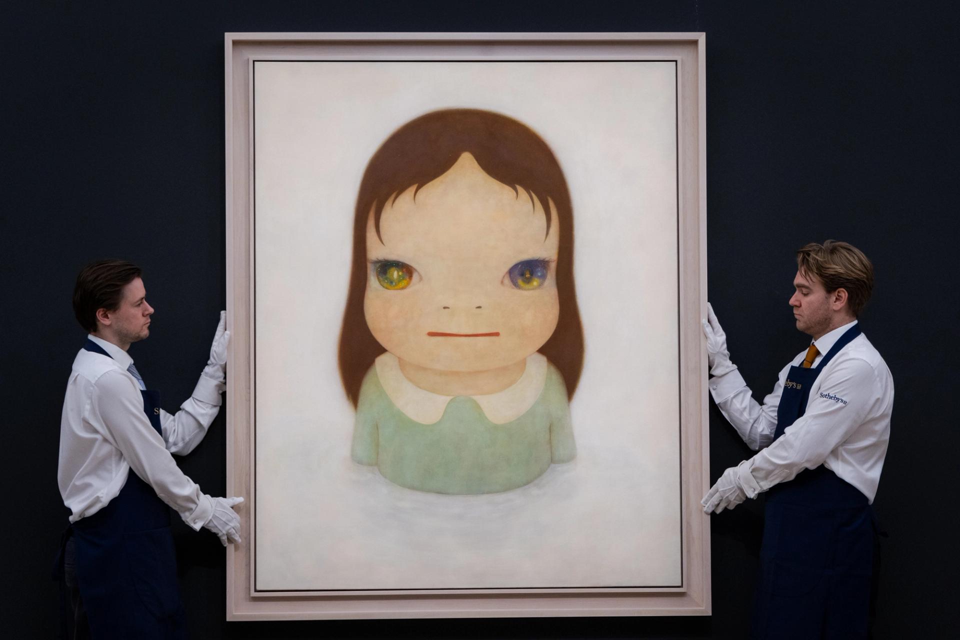 Sotheby’s other stand-out was Yoshitomo Nara’s large 2005 painting, Cosmic Eyes (in the Milky Lake), which was being offered in London three months before a major retrospective of the Japanese artist’s works at the Hayward Gallery. This eerily stylised image of a young girl semi-submerged in milk was distinguished by the spectacularly extra-terrestrial colouration of of the subject’s eyes. Estimated at £6m-£8m, this was pushed by two telephone bidders to a sale-topping price of £9m (with fees). According to Artprice, it was the 13th-highest auction price paid for Nara, who has been a long-standing staple of the top-end of the international art market.