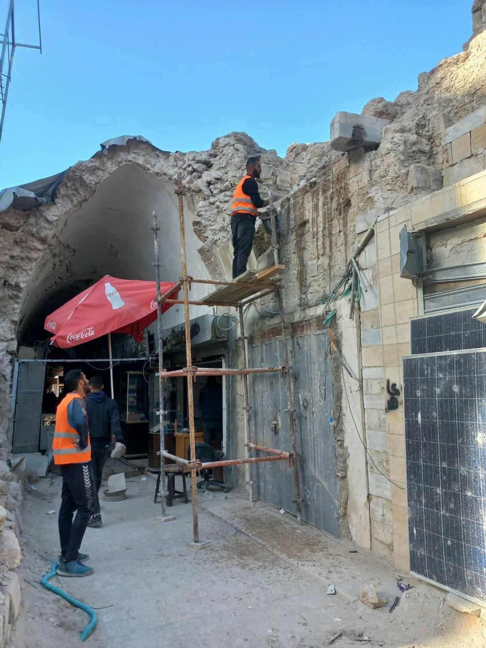CCHP, with funding from Cultural Emergency Response; conducted emergency intervention work at Al-Qaissariya Bazaar in Gaza City, including the removal of approximately 240 tonnes of rubble and salvaging 20 tonnes of archaeological stones using hand tools © Centre for Cultural Heritage Preservation (CCHP)