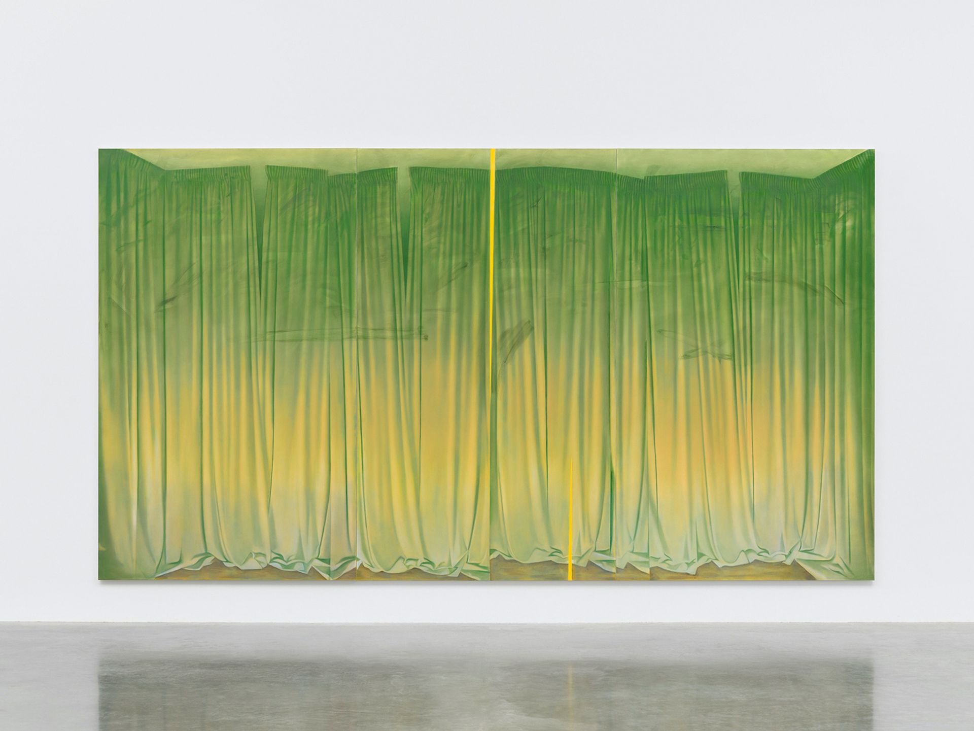 “They are seductive to look at but the audience can’t have them because the curtains reject everything—they will never open”: Giovanelli’s 5m-wide Prairie (2022) is one of several curtain paintings in the show Photo: Ollie Hammick; © White Cube; © artist