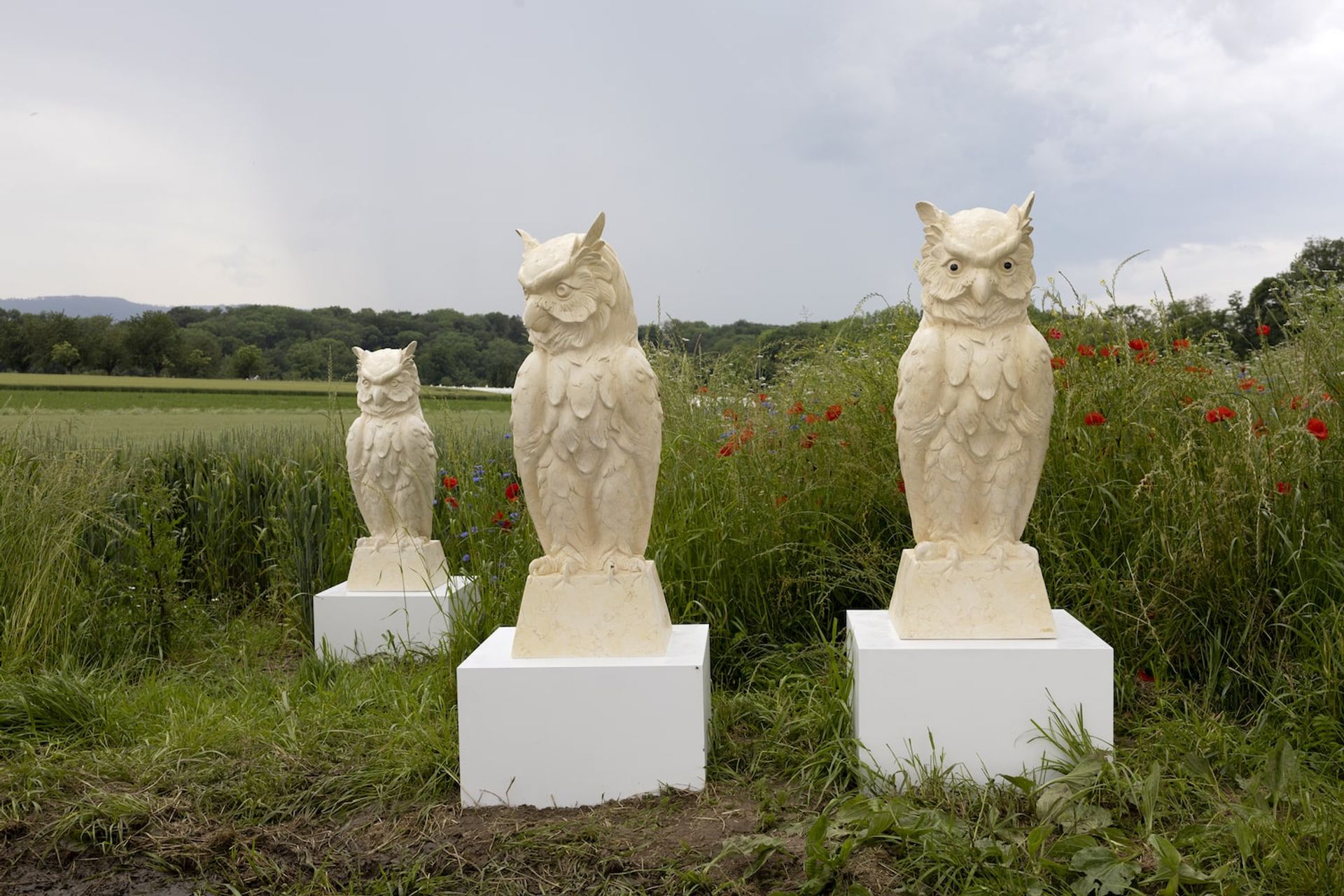Julia Scher's owl sculptures at Basel Social Club Photo: © Gina Folly