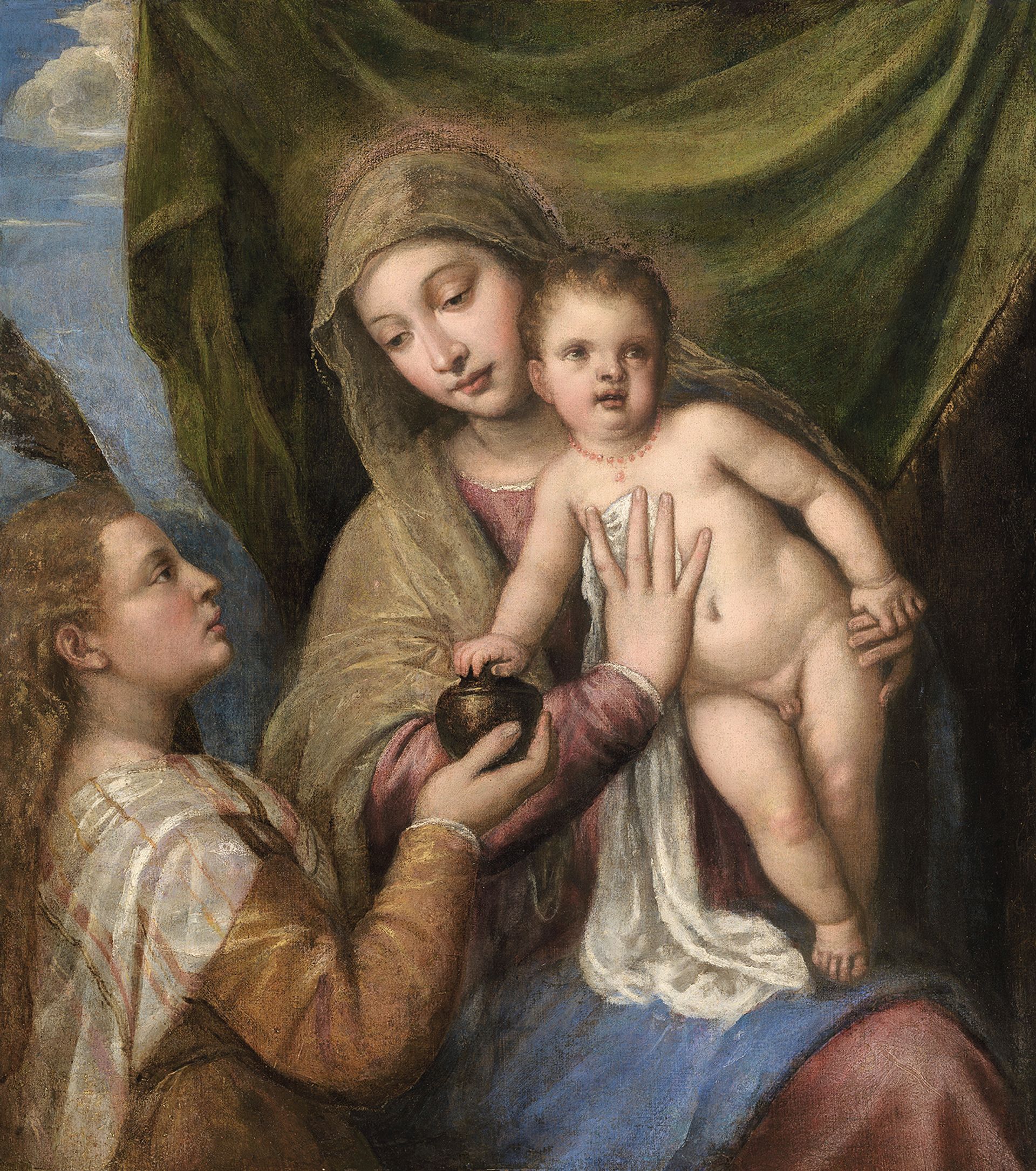 Tiziano Vecellio (Titian) and Girolamo Dente, Madonna and Child with St Mary Magdalene (Around 1555-60) Courtesy of Trinity Fine Art