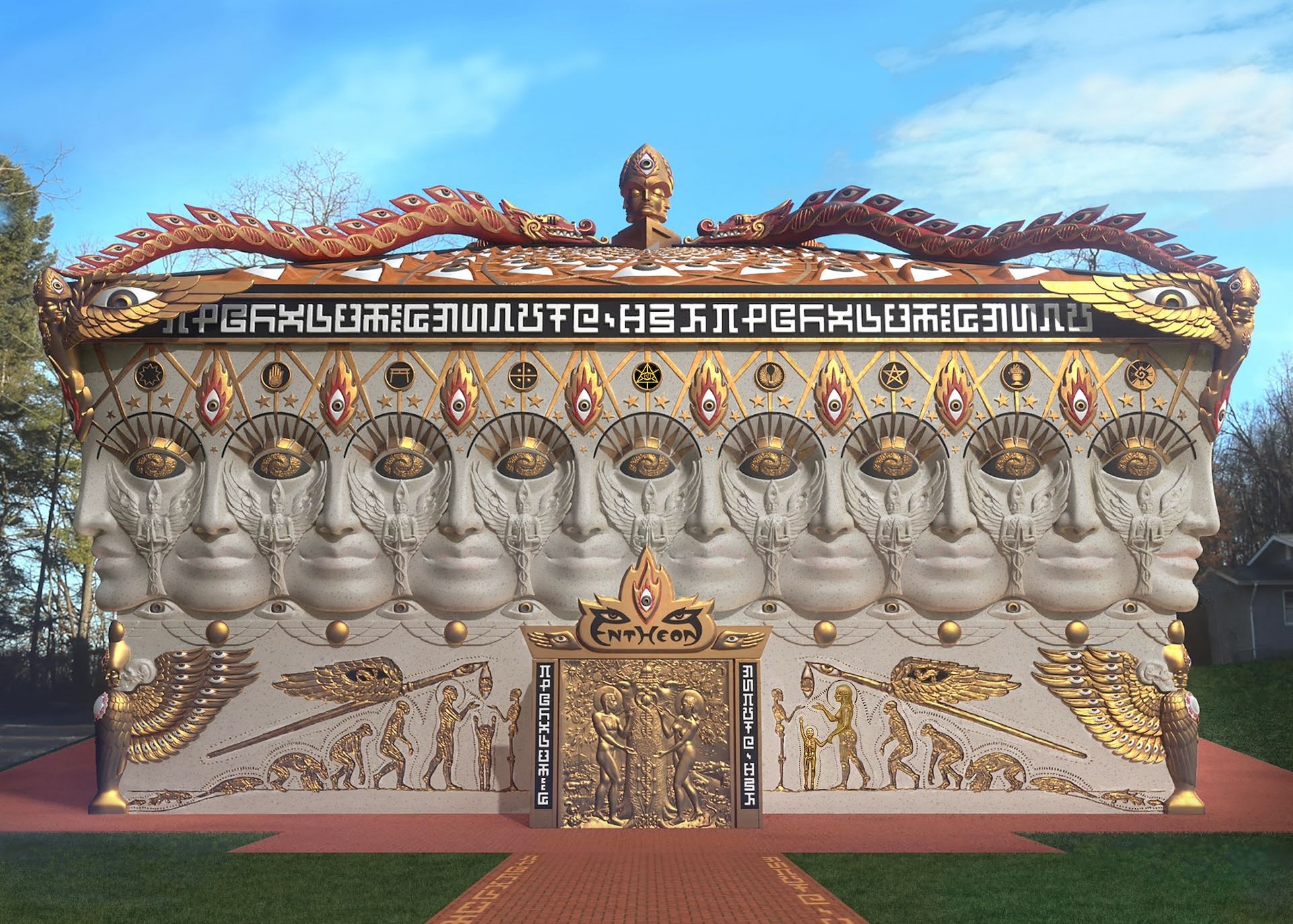 Rendering of the completed Entheon museum building's exterior Courtesy Church of Sacred Mirrors