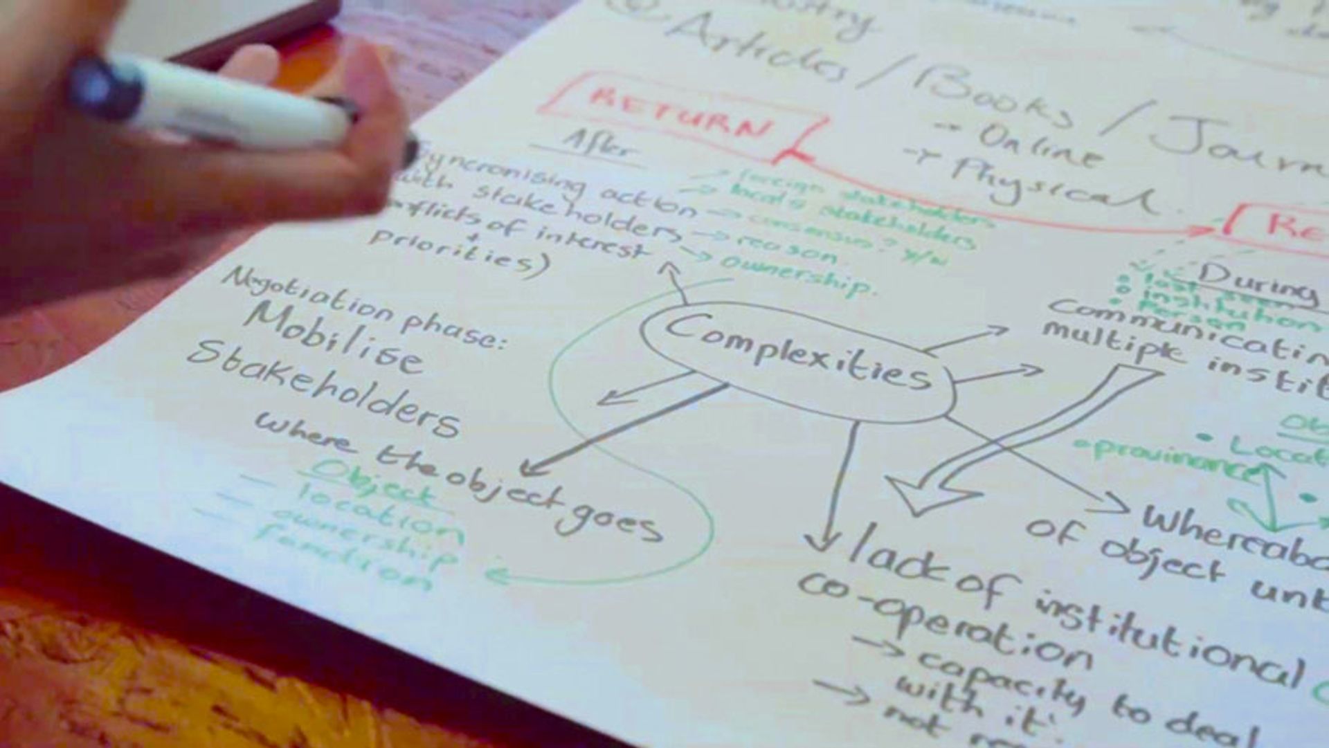 The data gathered from these conversations and research are analysed and placed in contact, negotiation and African accountability categories: how people make contact, initiating the restitution process; on whose behalf the artefacts are being negotiated; the specific request being made; an account of what needs to be done when the objects are returned; the challenges being navigated; the infrastructure required; and working with schools to develop child-focused programmes on the objects and restitution.