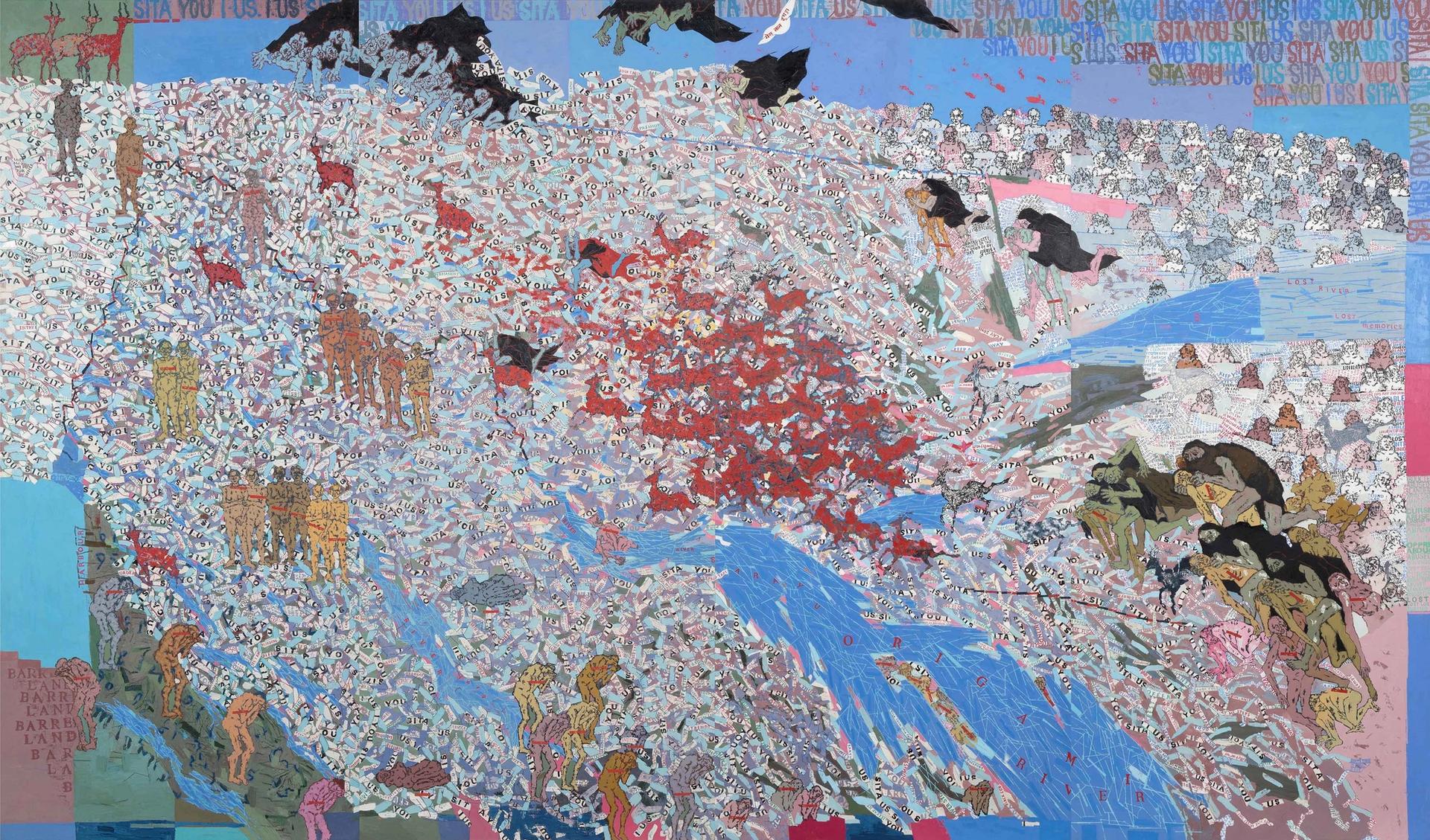 Arpita Singh, Searching Sita Through Torn Papers, Paper Strips and Labels (2015)