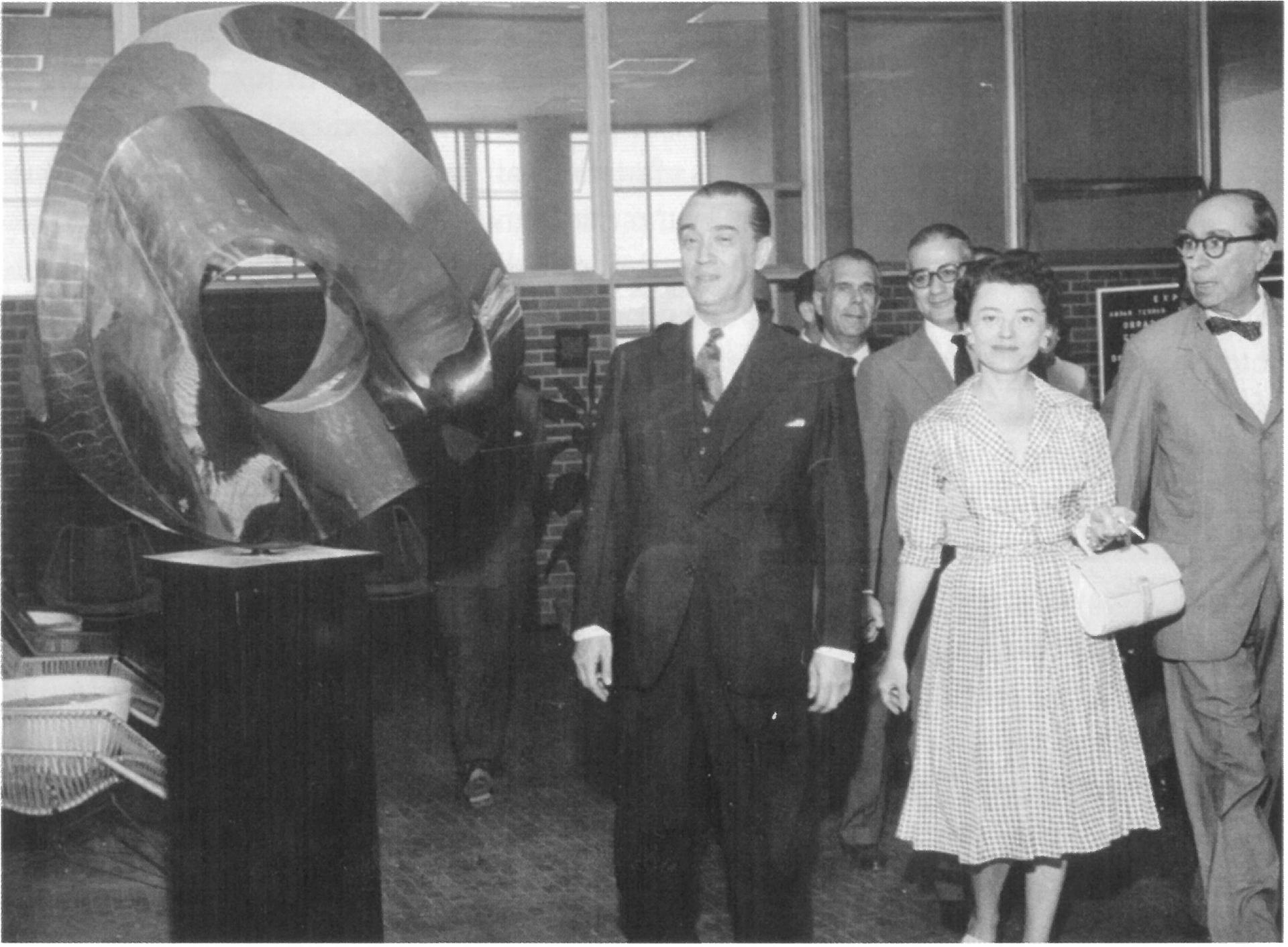 Sodré Bittencourt at the opening of MAM with Brazil's President at the time, Juscelino Kubitschek, left, and Ambassador Mauricio Nabuco