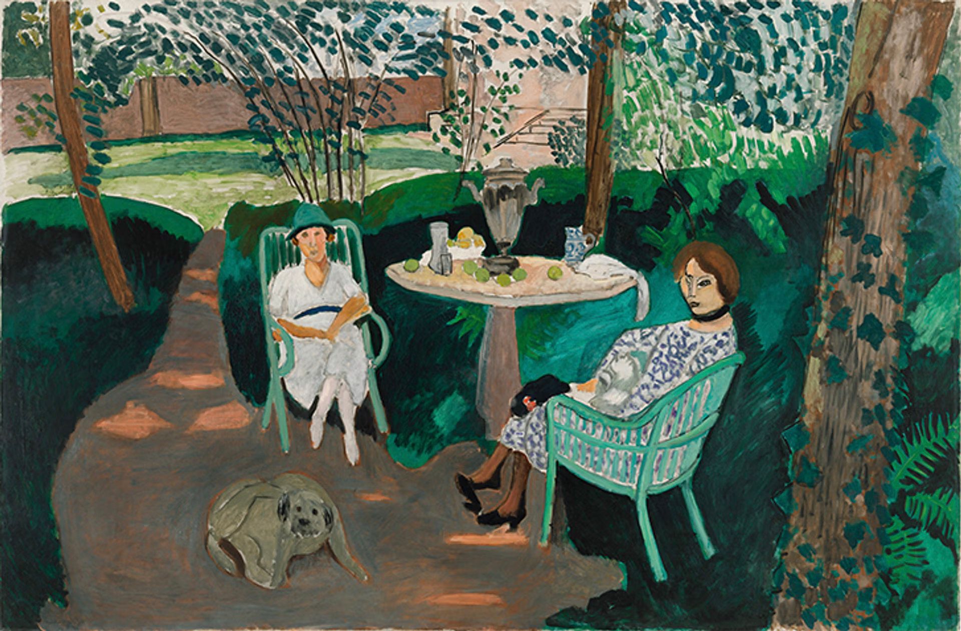 Marguerite, on the right, can be identified in Matisse's Tea (1919) by the ribbon she wore to hide a scar on her neck