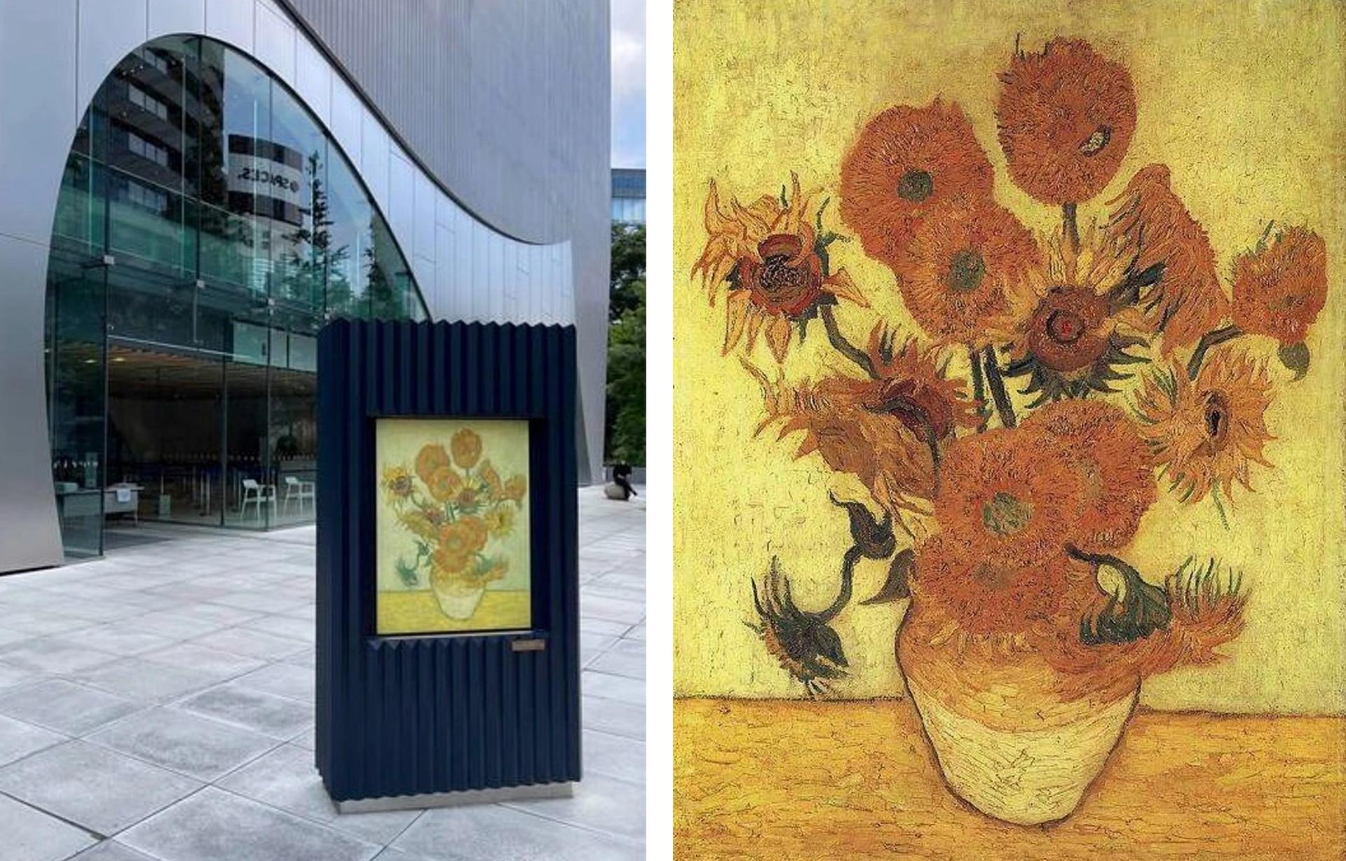 One of Van Gogh’s iconic Sunflower paintings is owned by a Japanese company, Sompo insurance. The painting was originally displayed in a gallery on the 42nd floor of its corporate headquarters in Tokyo, with dramatic views over the city. In 2020 a new building was constructed with street access for the Sompo Museum of Art.