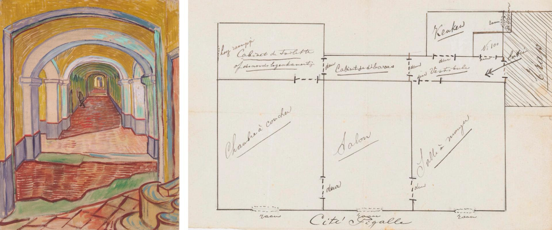Van Gogh’s Corridor in the Asylum (September-October 1889) and a plan of the new apartment of Theo and Jo in the Cité Pigalle, Paris (drawn by Theo on 31 January 1889)