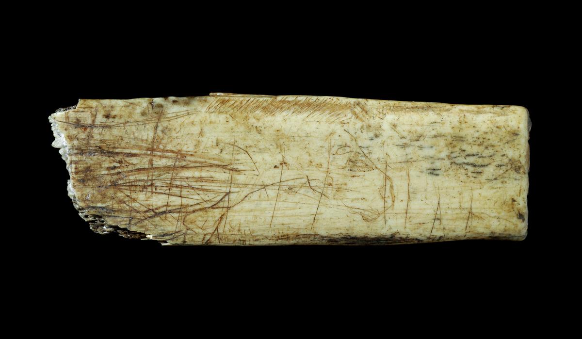 Another artefact, an engraved drawing of a horse on bone, is 13,500 years old. “This is the oldest known work of figurative art from England, and was found at Robin Hood Cave, Creswell Crags in Derbyshire,” the statement explains. The piece was discovered around 1877 by Reverend J Magens Mello, Thomas Heath and William Boyd Dawkins of Manchester University.