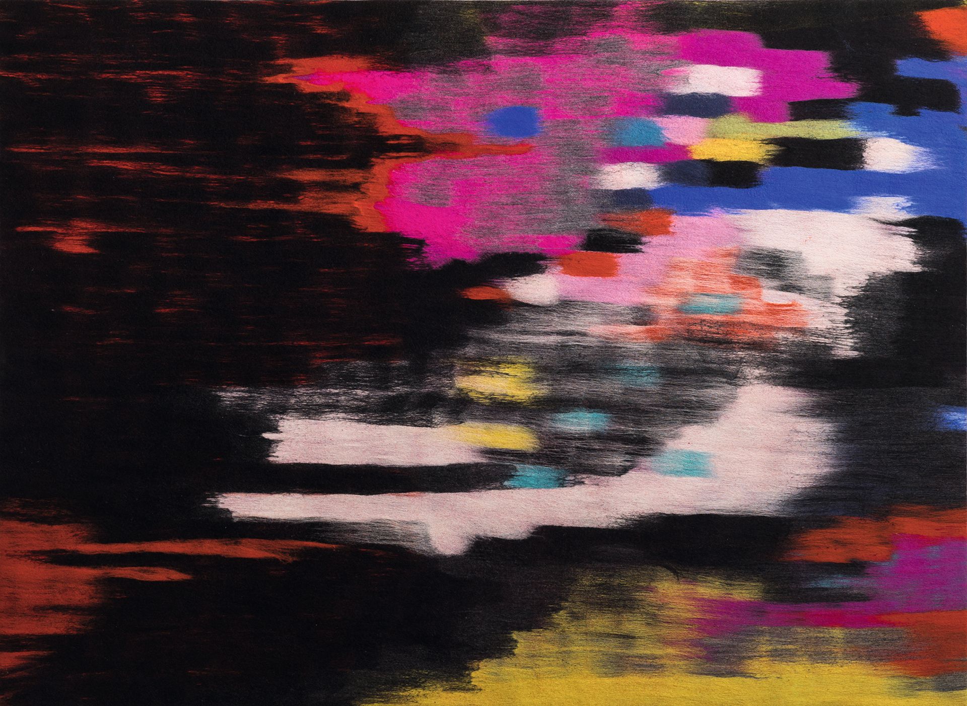 Gulnur Mukazhanova’s work is very beautiful—she is kind of doing painting, but with wool. So it is tactile and abstract. A recurrent theme in the whole section is the use of these old hand-craft techniques and using them to rewrite the abstract vocabulary of art. This concept is particularly relevant to Dubai’s intersection of ancient knowledge and rapid modern transformation.