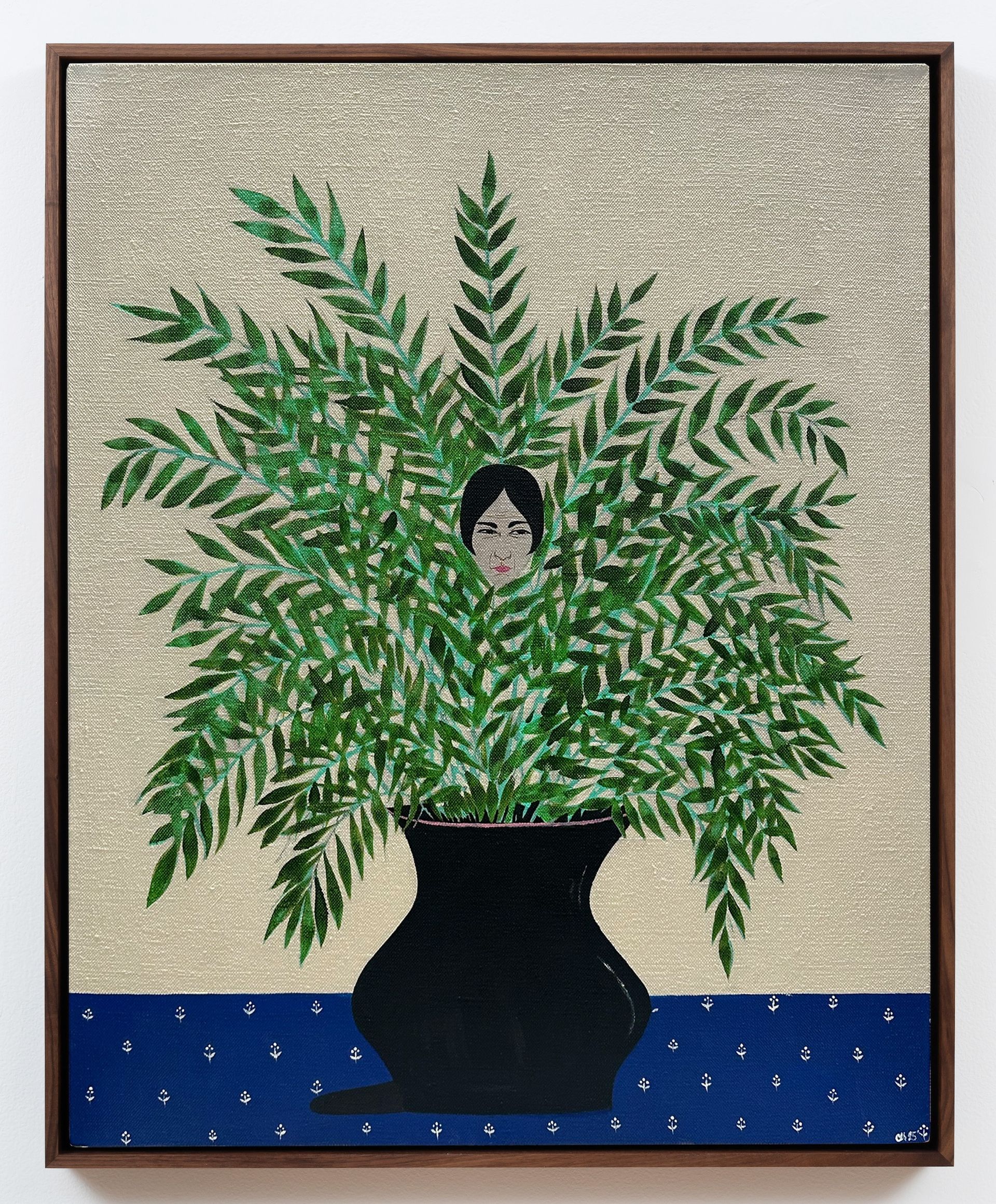 Clare Rojas, Woman’s Head in the Fern, 2025 Photo: Phillip Maisel. Courtesy of the artist and Jessica Silverman, San Francisco