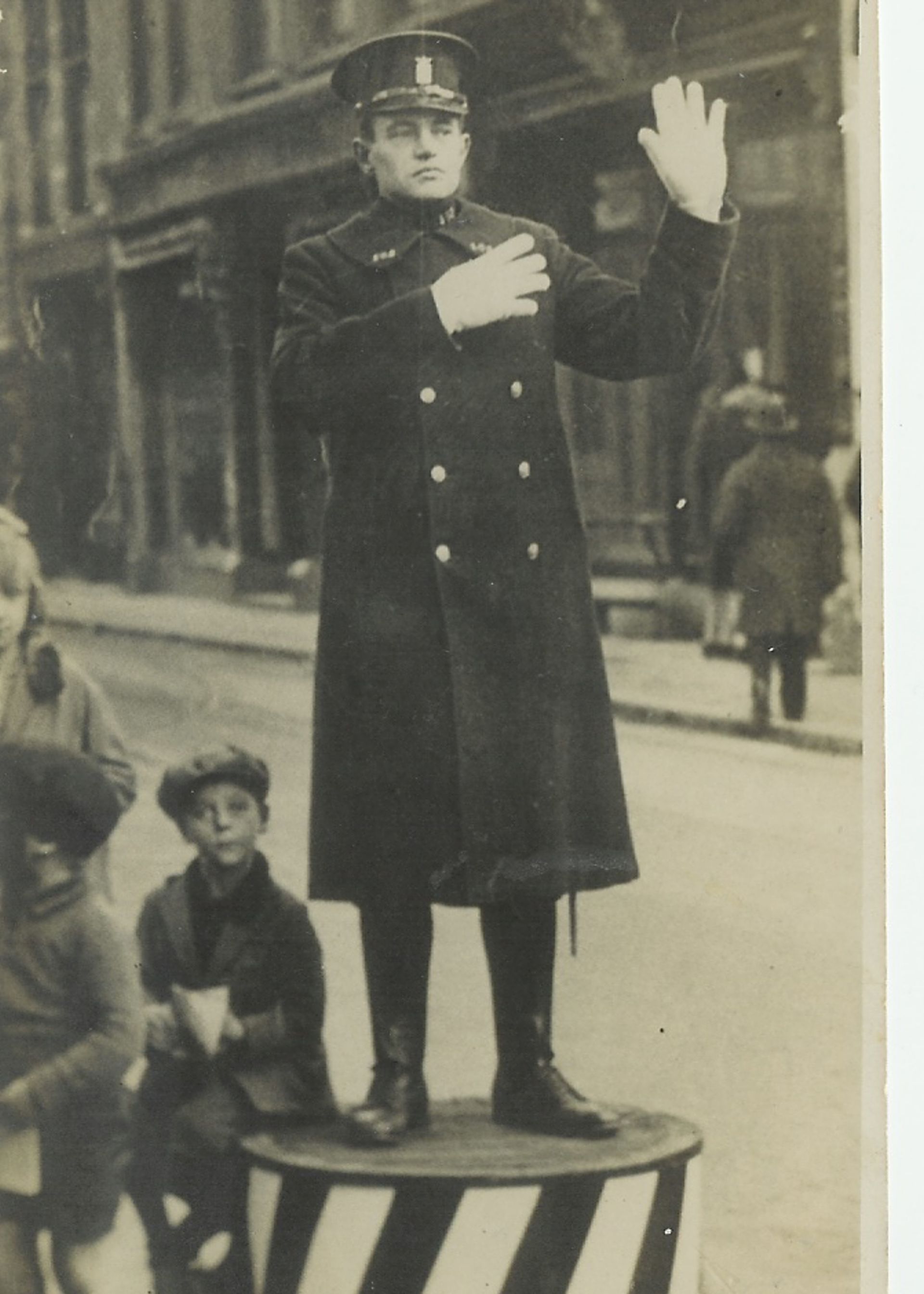 Bart Witteman directing traffic in Harlem. After the discovery that he was sheltering Jewish people, he was arrested, deported and murdered by the Nazis Courtesy Ton Witteman