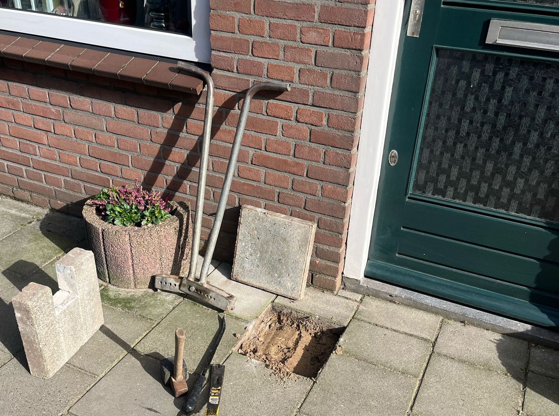 With the agreement of the current residents, the plaque was laid outside the house where Bart Witteman sheltered two Jewish people Courtesy Ton Witteman