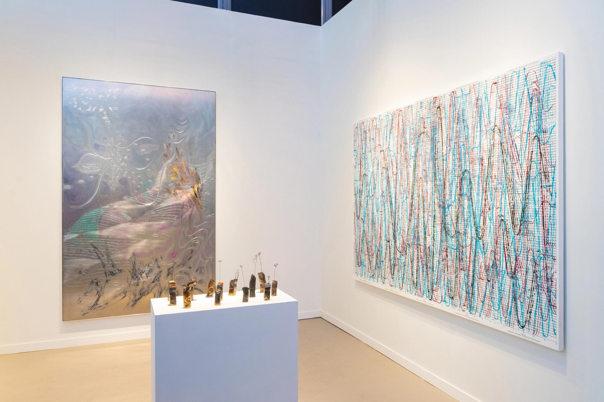 Kurimanzutto sold WangShui’s Osmotic Burst (2024, left) to the Dallas Museum Steven Molina Contreras