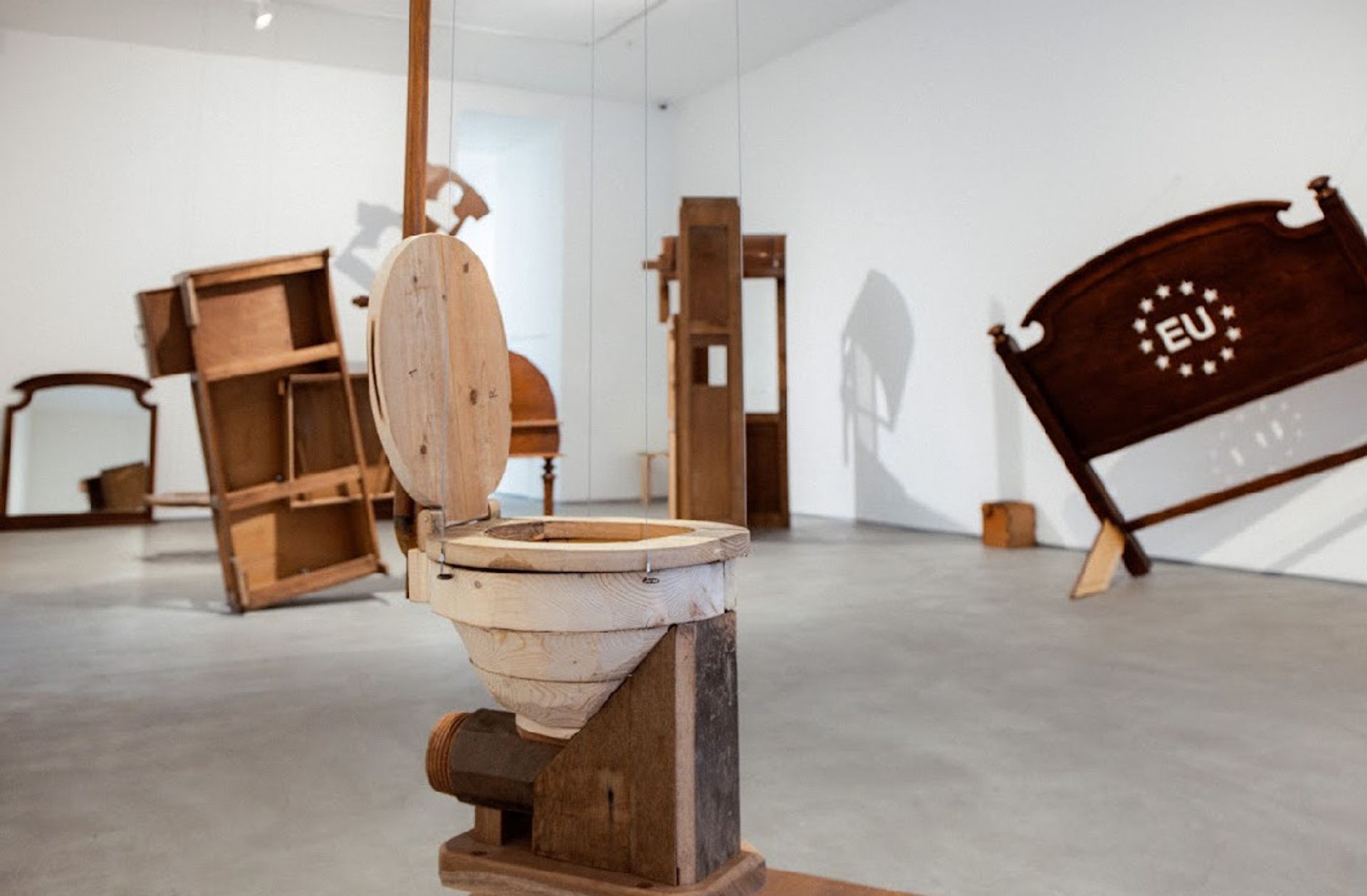 The assemblages are a combination between found furniture from the Netherlands and elements in wood made by me. In Amsterdam, there is a wood library within the Royal Tropical Institute, which is filled with samples from earlier Dutch territories, including Angola. Wealthy Dutch people could order trees from these wood samples to be cut in the colonies and delivered to the Netherlands to be turned into furniture.