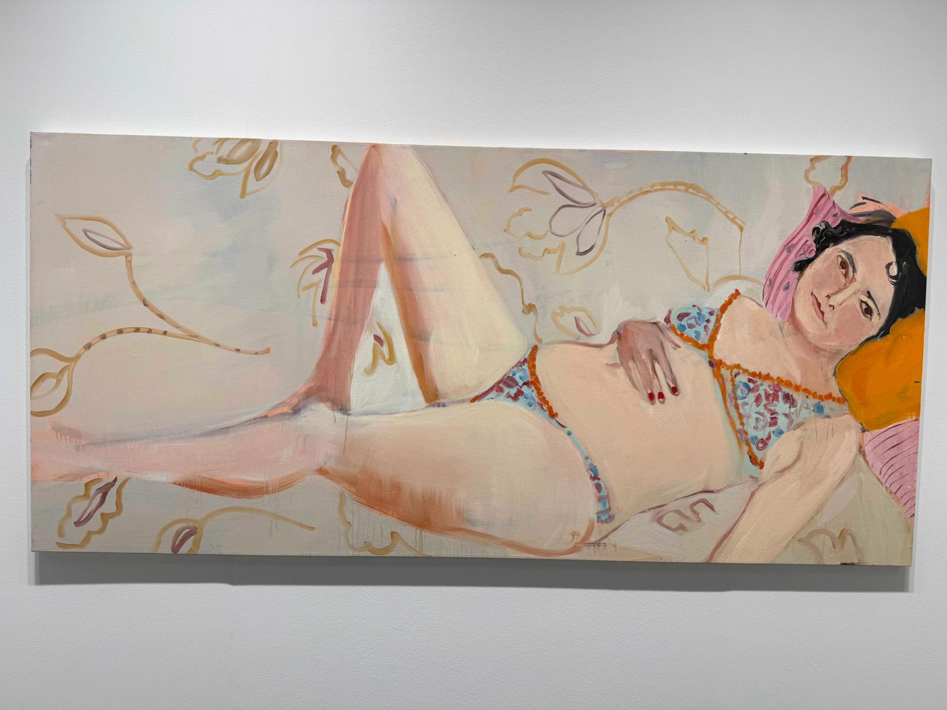 Someone's having a laid-back Frieze week: Chantal Joffe's depiction of art-world stalwart Hettie Judah in Hettie in the Summer (2024) Gareth Harris
