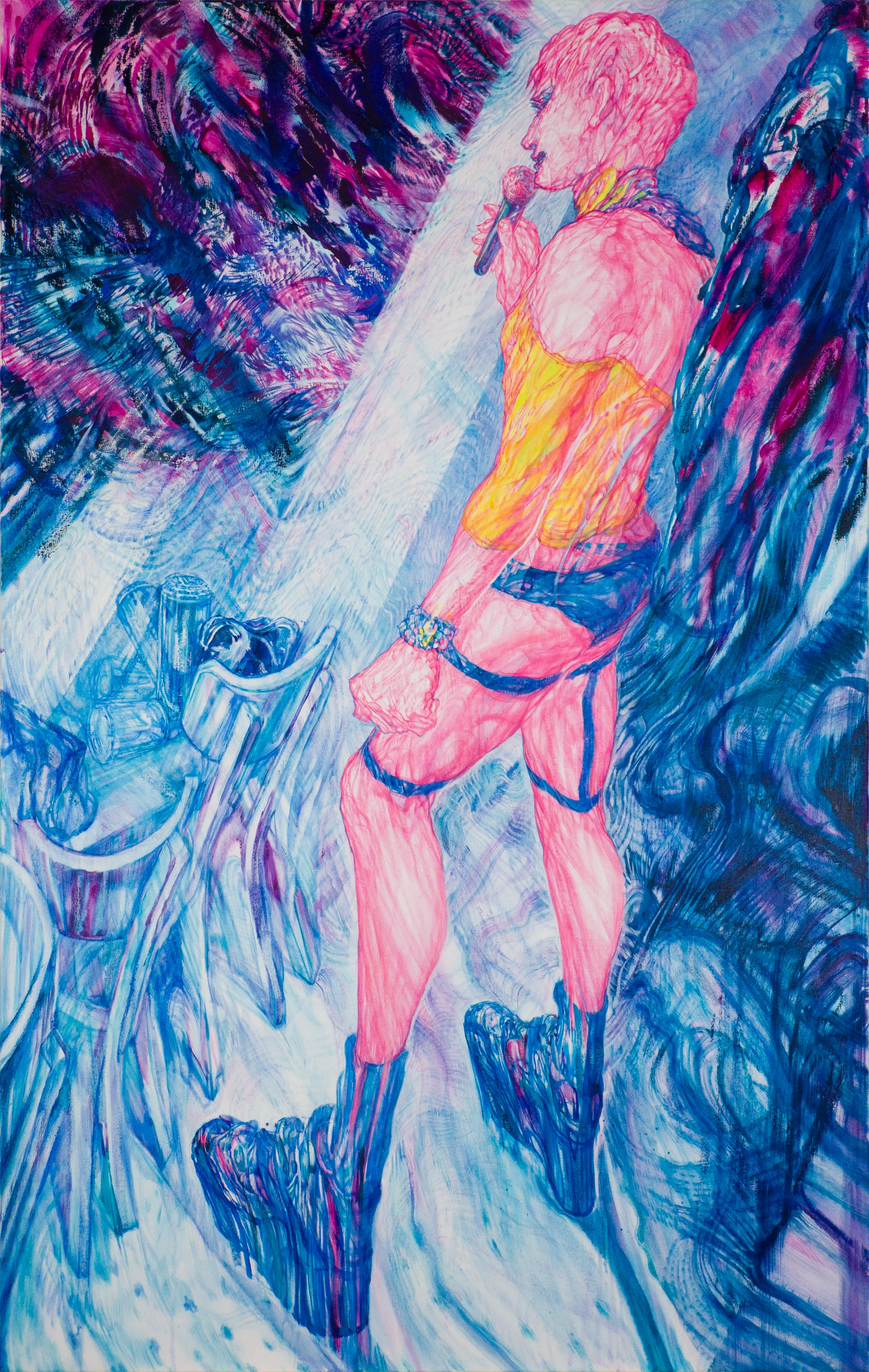 Trade war aside, Future Fair continues its tradition of elevating portraiture in all imaginable iterations. At the Gowanus-based newcomer The Ritual Division’s stand, the Japanese artist Saki Sonoda paints the backstage machinations of the legendary Bushwick club House of Yes in screaming peals of neon pink. “She was drawing from life in the green room of this venue, then scaling the drawings up to make paintings,” the gallery's co-founder Taylor C. Black explains.