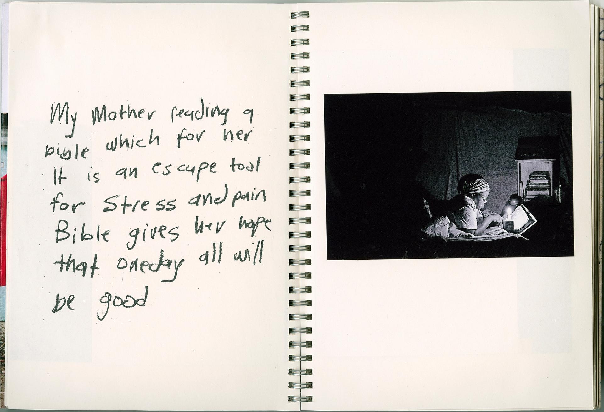 He was in London to receive his £30,000 award as the 2025 recipient of the Deutsche Börse Photography Foundation Prize. It is given in recognition of his photobook, I carry Her photo with Me, a work that uses a scrapbook aesthetic together with his photographs and handwritten notes to speak about the loss of his sister. The work also aims to create a wider dialogue about the phenomena of disappearances in his home country, and to explore the continued legacy of apartheid and colonialism.