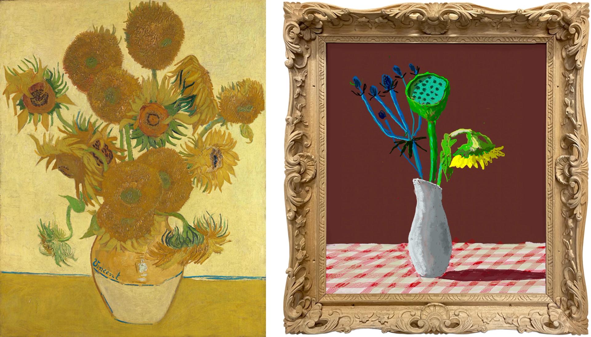 Van Gogh’s Sunflowers (August 1888) and Hockney’s 19th March 2021, Sunflower with Exotic Flower
