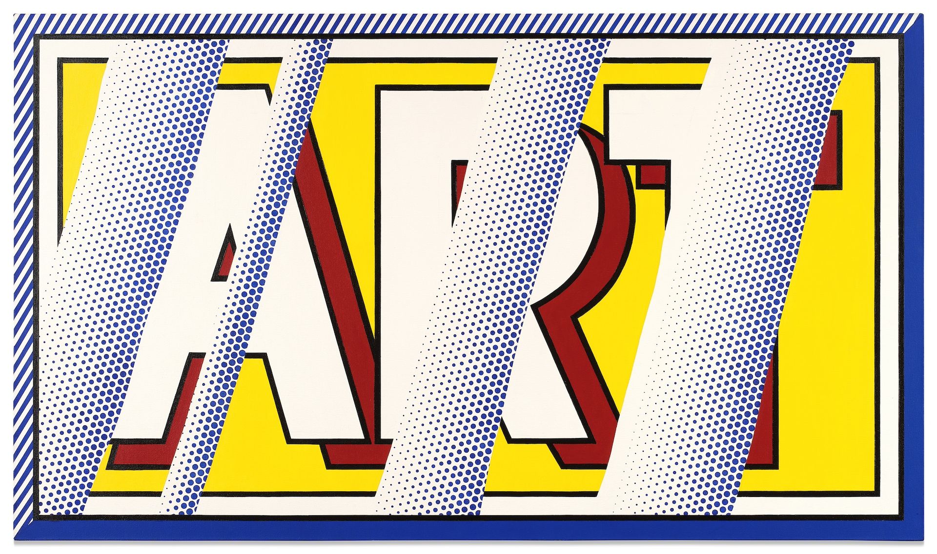 The nine Lichtenstein lots on offer—split into two blocks and all backed by guarantees—also overperformed, with five selling for hammer prices above their high estimates. Chief among the group was Reflections: Art (1988), a large canvas installed right above the rostrum featuring the word “ART” rendered in the artist’s classic Ben-Day dot style.