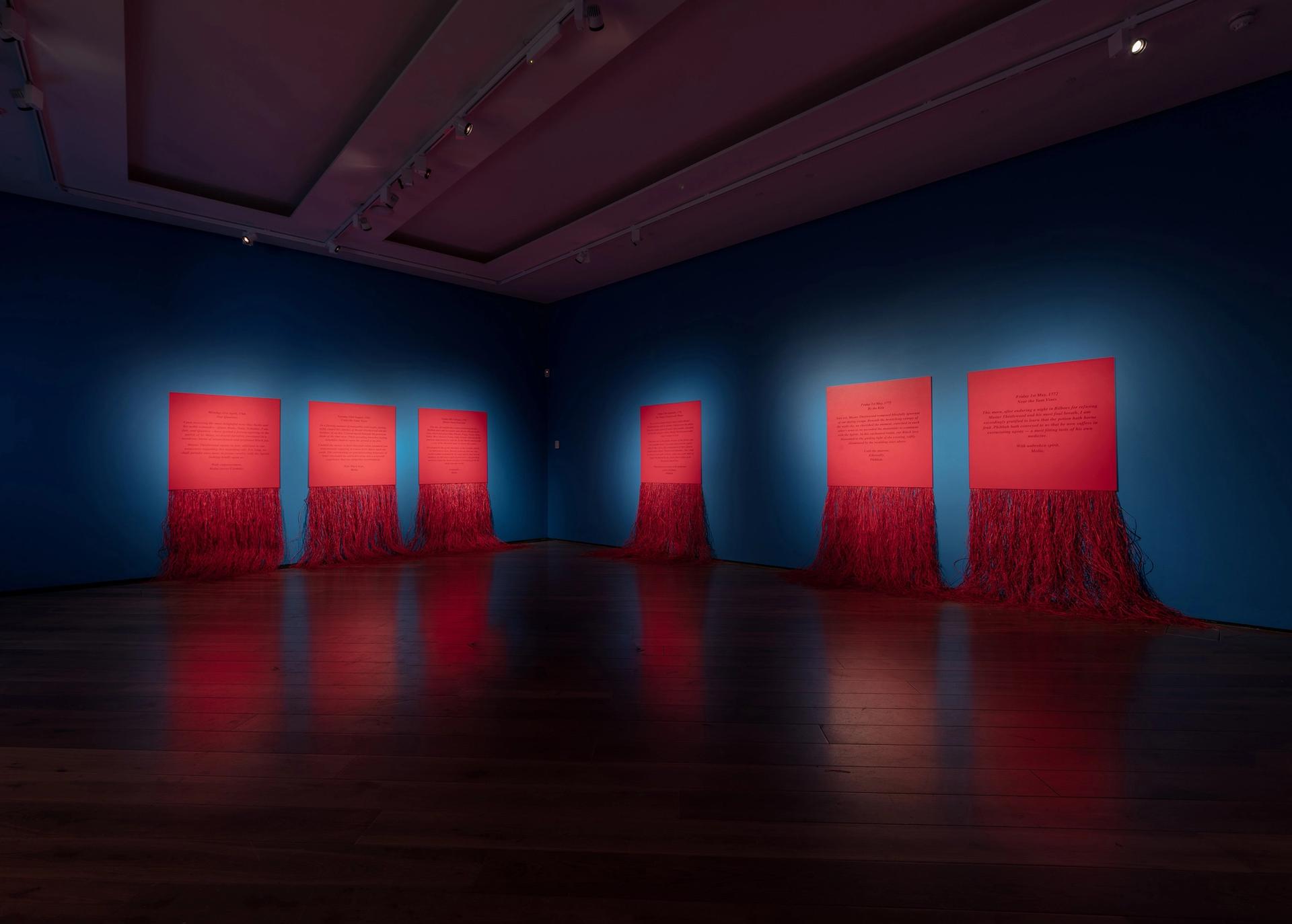 This interplay between political and personal, trauma and strength runs throughout. The show includes grim reminders of Britain’s role in trafficking African people, while also subverting and challenging conventional historical accounts by offering new perspectives. Case in point is the room devoted to Phibbah and Molia, two enslaved women featured in the infamous journals kept by their 18th-century owner Thomas Thistlewood, in which he meticulously chronicled the daily brutalities of his Jamaican plantation. Now, thanks to a series of wall-mounted text works by James—giving an invented voice to the duo—they emerge as ingenious, defiant individuals, vividly recounting their acts of rebellion and relishing their brief moments of respite.