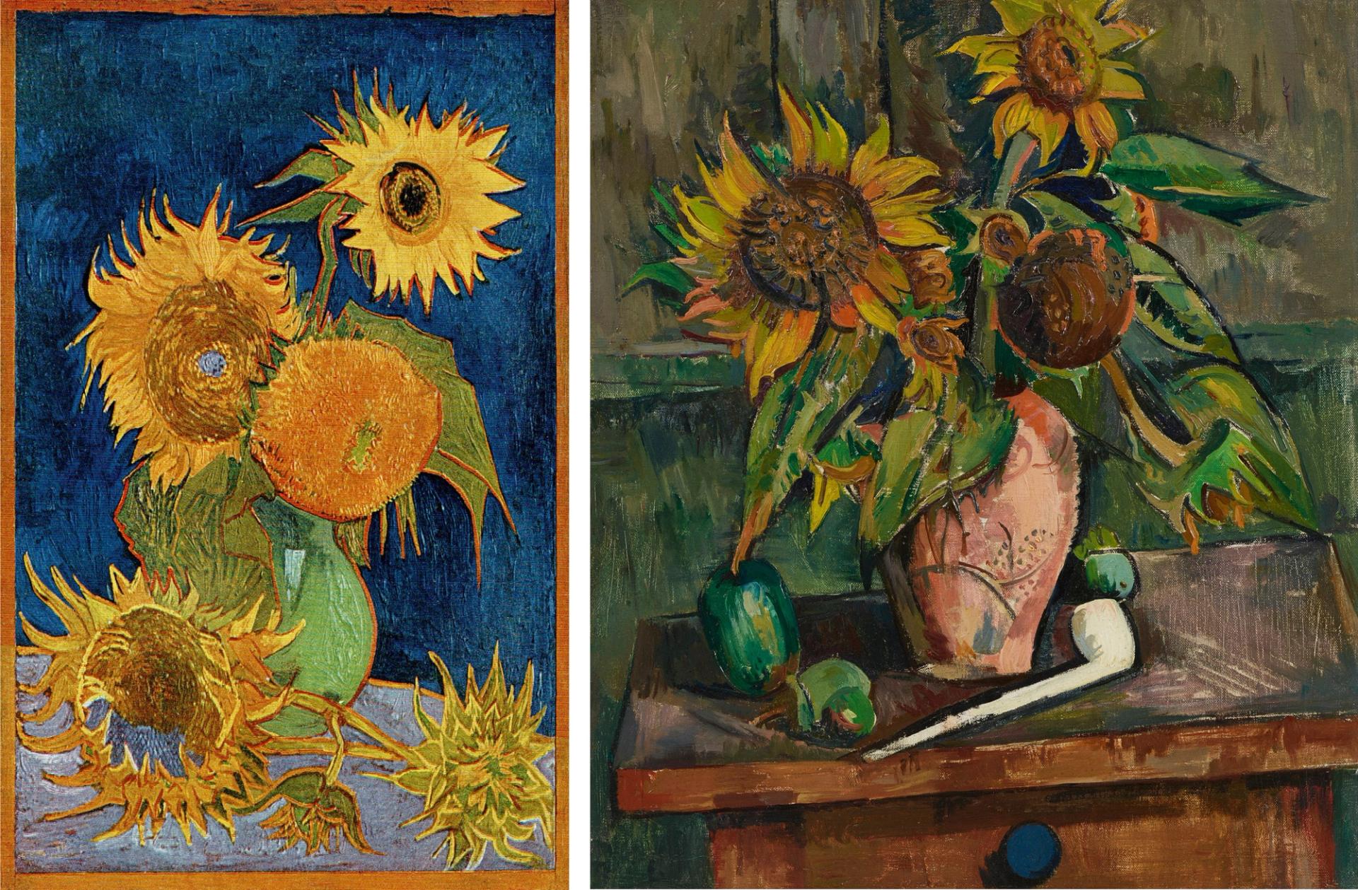 Van Gogh’s Six Sunflowers (August 1888, destroyed in 1945) and Nakamura Tsune’s Sunflowers (1923)