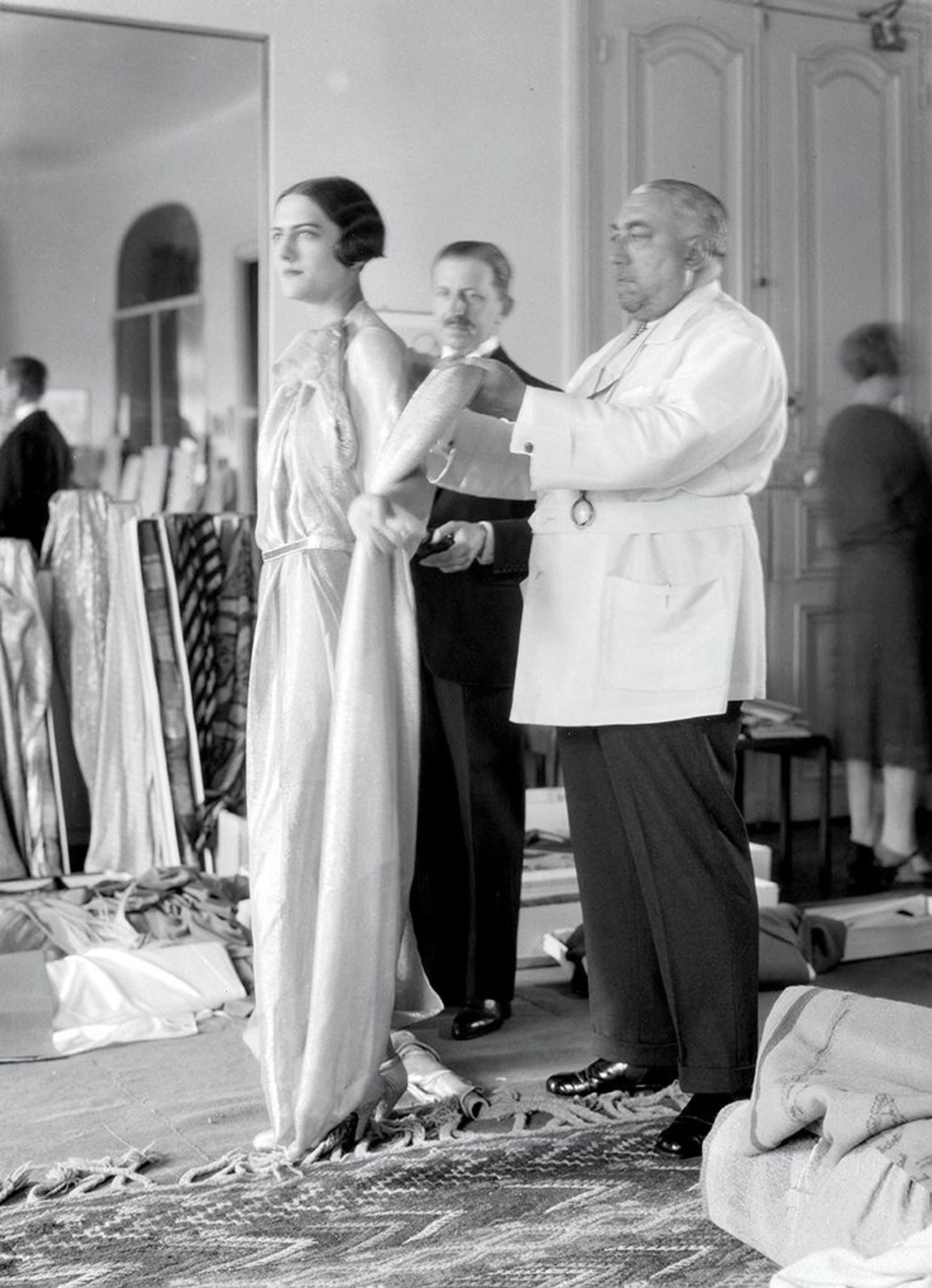 The master’s final touch: Paul Poiret working on a dress at his fashion house in Paris in 1927