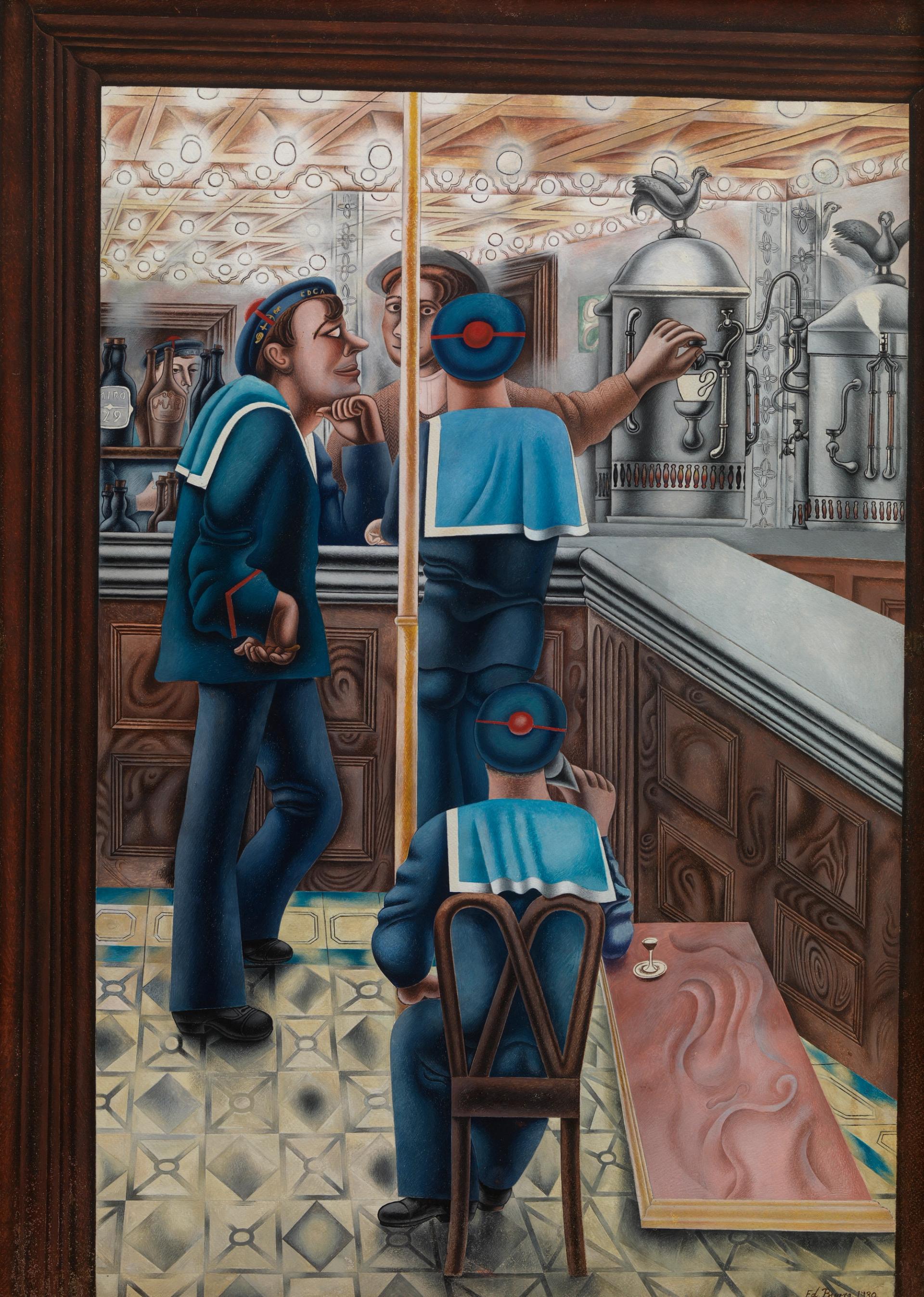 Edward Burra, Three Sailors at a Bar, 1930. Private collection; courtesy of Hazlitt Holland-Hibbert.