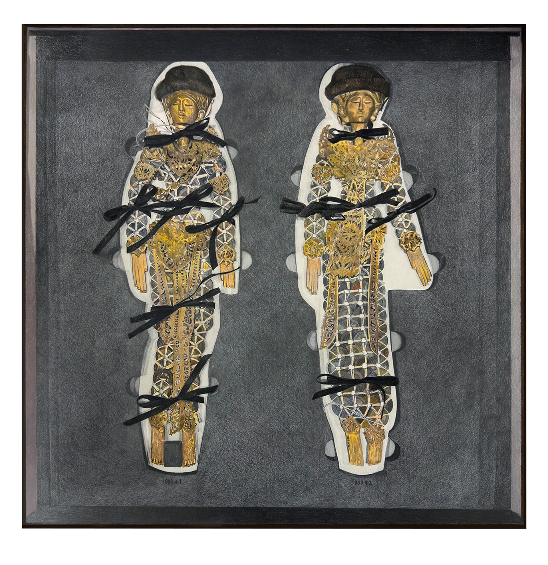 Gala Porras-Kim, 1 Drawer C.61.14 with 2 Amulets, Charms and Religious & Divination Artefacts & House Ornaments - Asia at Pitt Rivers Museum, 2025 Courtesy of the artist and Sprüth Magers. Photo: Ben Westoby / Fine Art Documentation