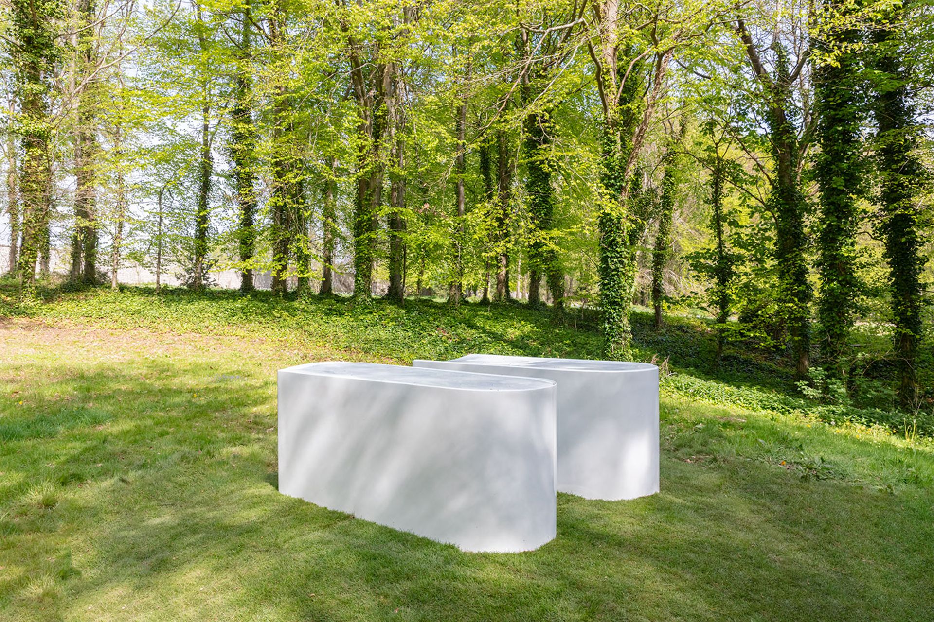 Rachel Whiteread, Untitled (Pair) (1999), in the upper woodland by the chalk pit at Goodwood Art Foundation Photograph by Lucy Dawkins, courtesy of Goodwood Art Foundation